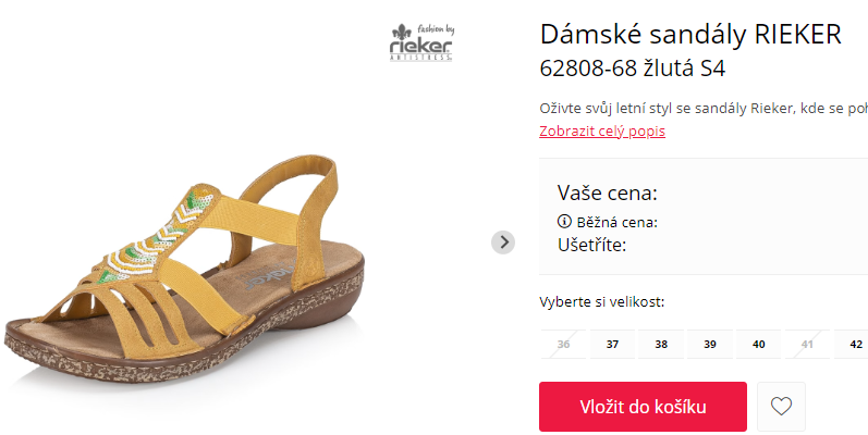 Pokud si produkt rozkliknete, taktéž vidíte jeho aktuální skladovou dostupnost. Na detailu produktu je také zřejmé, které velikosti skladem jsou a které ne. V případě, že je některá velikost vyprodaná, je světlá a přeškrtlá. Skladem jsou velikosti, které jsou zvýrazněny tučným písmem.
