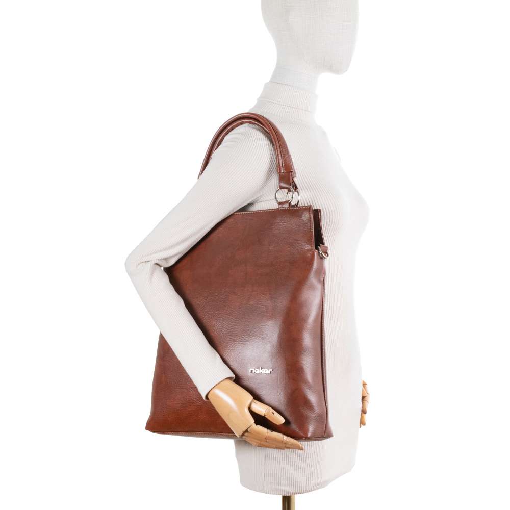 Kabelka RIEKER je dokonalým příkladem nadčasové elegance, která se nikdy neokouká. Její hnědý svršek zdobí jemné tmavší linie, které dodávají modelu hloubku a originální vzhled. Minimalistický design doplňuje decentní logo značky stříbrné barvy, které podtrhuje její prestiž a kvalitu. Na první pohled vás zaujme svou čistotou a elegancí, ale její kouzlo se skrývá i v praktických detailech. Zadní menší kapsa se zipem umožňuje uložit věci, ke kterým potřebujete rychlý přístup. Hlavní prostor je uzavřen zipem, což zajišťuje bezpečnost, a zároveň nabízí dostatek místa pro vše potřebné během dne – od peněženky přes kosmetické drobnosti až po zápisník či tablet. Vnitřní menší kapsy vám pomohou udržet si dokonalý přehled a pořádek. Praktičnost kabelky doplňuje i variabilní způsob nošení – dva kratší pevné úchyty jsou ideální pro nošení v ruce nebo na předloktí, zatímco odepínatelný, délkově nastavitelný popruh vám umožní pohodlné nošení přes rameno. Hnědá barva je univerzální a snadno kombinovatelná s různými styly – skvěle vynikne s elegantním kostýmem, ale stejně dobře se hodí i k ležérním džínům a košili. Kabelka RIEKER je tedy nejen krásným módním doplňkem, ale také spolehlivým pomocníkem, který vám usnadní den a dodá sebevědomí při každé příležitosti. Rozměry: cca V 39 cm x Š 33 cm x H 9 cm Vnitřní uspořádání: kabelka není dělená. Kabelka má délkově nastavitelný popruh, který lze odepnout. Maximální délka nastavitelného popruhu cca 135 cm.