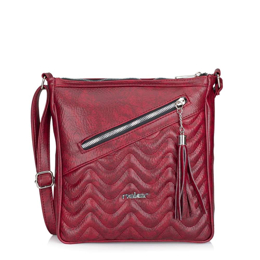 Kabelka RIEKER je skutečným mistrovským kouskem, který spojuje moderní design a praktičnost pro každodenní použití. Svršek kabelky je vyhotoven ve výrazné červené barvě, která okamžitě dodává modelu výrazný charakter a prostřednictvím efektních linií prošívání zvýrazní estetiku. Logo značky RIEKER ve stříbrné barvě je umístěno na přední části kabelky a působí decentně, ale zároveň podtrhuje prestiž značky. Přední část kabelky je vybavena praktickou kapsou na zip, která je doplněna dekorativní aplikací – ideální pro rychlé uložení drobností. Zadní strana kabelky obsahuje diskrétní všitou kapsu na zip. Hlavní prostor kabelky je uzavíratelný kvalitním zipem, který zajišťuje bezpečné uložení obsahu a uvnitř se nacházejí dvě menší vnitřní kapsičky, jedna z nich se zipem a druhá je otevřená. Takto členitý prostor umožňuje efektivní organizaci a přehlednost obsahu, což výrazně zvyšuje komfort každodenního používání. Kabelka je vybavena délkově nastavitelným popruhem, který lze snadno přizpůsobit vašim potřebám a můžete ji nosit přes rameno nebo crossbody, přičemž popruh zajišťuje pohodlné nošení i při delším používání. S touto kabelkou RIEKER získáte víc než jen módní doplněk, je to kabelka, která svým zpracováním a designem odráží přesně to, co značka RIEKER představuje – styl bez kompromisů, spolehlivost a důraz na každý detail. Rozměry: cca V 26 cm x Š 25 cm x H 7 cm Vnitřní uspořádání: Kabelka není dělená. Kabelka má délkově nastavitelný popruh, který nelze odepnout. Maximální délka nastavitelného popruhu je cca 140 cm.