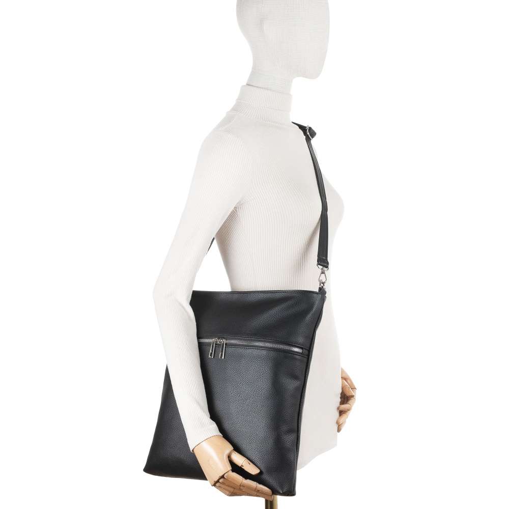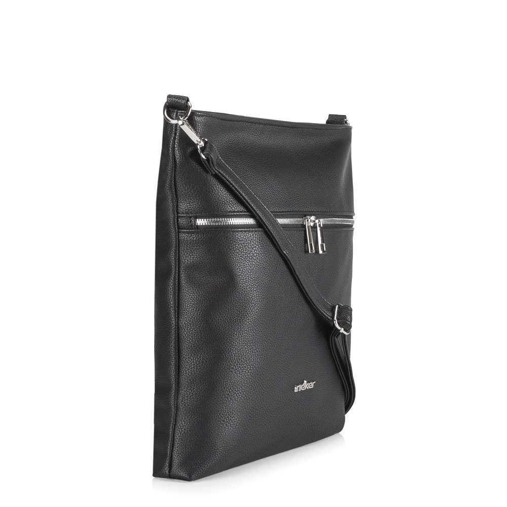 Černá klasika se stylovým podpisem značky RIEKER – tato kabelka je dokonalým spojením nadčasového designu a praktického využití. Hladký černý svršek doplňuje decentní stříbrné logo značky, které kabelce přidává jemný lesk a sofistikovaný charakter. Praktický design je promyšlen do posledního detailu. Přední kapsa na zip poskytuje rychlý přístup k nezbytnostem, zatímco hlavní prostor je prostorný a vybaven vnitřními přihrádkami, které umožňují dokonalou organizaci. Zadní kapsa se zipem zajišťuje bezpečné uložení cenností, které chcete mít vždy po ruce. Kabelka je vybavena nastavitelným popruhem, který umožňuje nošení přes rameno nebo crossbody stylem, čímž zaručuje maximální komfort a flexibilitu při nošení. Minimalistický design a precizní zpracování dělají z této kabelky univerzální doplněk, který skvěle doplní každý outfit. Tato kabelka RIEKER není jen módním doplňkem – je to vyjádření vašeho vkusu a sebevědomí. Rozměry: cca V 37 cm x Š 34 cm x H 5 cm Vnitřní uspořádání: Kabelka není dělená. Kabelka má délkově nastavitelný popruh, který lze odepnout. Maximální délka nastavitelného popruhu cca 125 cm.