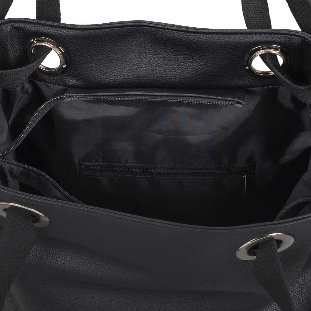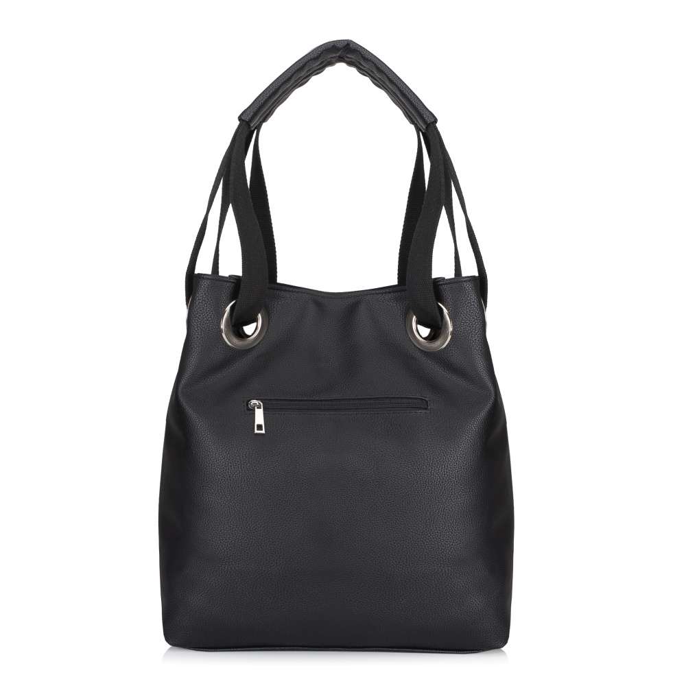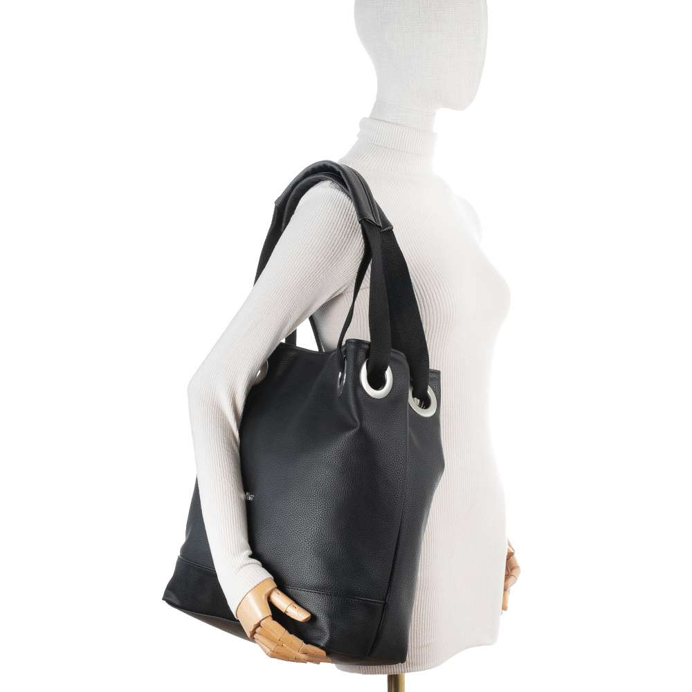 Kabelka RIEKER v černém provedení je skutečným symbolem nadčasového stylu a praktičnosti, který si získá každou moderní ženu. Univerzálně působící vzhled zdobí stříbrné logo značky, které působí decentně, ale zároveň dodává kabelce nádech jedinečnosti. Funkčnost se pojí s elegancí – zadní část kabelky nabízí praktickou kapsu na zip, ideální pro uložení drobností, které chcete mít vždy po ruce, jako jsou klíče nebo mobil. Hlavní prostor uzavíraný zipem poskytuje dostatek místa pro každodenní nezbytnosti a je doplněn o dvě menší přihrádky – otevřenou a uzavíratelnou zipem, což usnadňuje udržování organizace uložených věcí. Dva pevné popruhy jsou navrženy tak, aby zajistily pohodlné nošení kabelky přes rameno. Tento model kabelky značky RIEKER představuje dokonalou rovnováhu mezi módním designem a praktickými funkcemi. Díky svému jedinečnému vzhledu se stane výrazným doplňkem vašeho šatníku a spolehlivým společníkem pro každý den - ať už do práce, na nákupy nebo volnočasové aktivity. Rozměry: cca V 39 cm x Š 37 cm x H 14 cm Vnitřní uspořádání: kabelka není dělená. Délka popruhů pro nošení přes rameno je cca 60 cm.