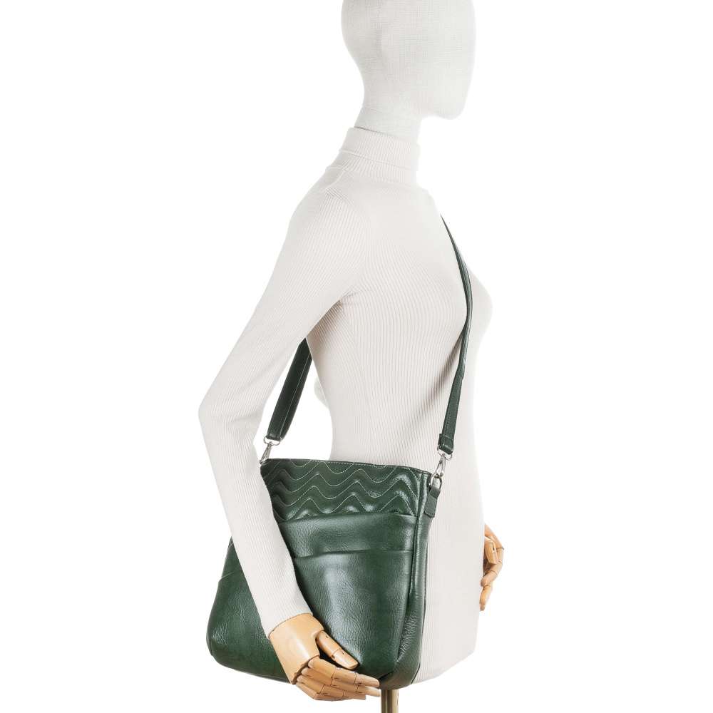 Kabelka značky RIEKER je opravdu výrazným módním doplňkem, který zaujme ženy s citem pro styl. Vizuálně zajímavá zelená barva dodá outfitu jedinečnost, zatímco působivé linie prošití a stříbrné logo značky na přední straně vytváří originální a nepřehlédnutelný vzhled. Promyšlené členění prostorů dělá z této kabelky nejen módní doplněk, ale také praktického pomocníka pro každý den. Na přední straně se nacházejí hned dvě kapsy – jedna se zapínáním na zip pro bezpečné uložení věci a druhá s magnetickým klipem pro rychlý a snadný přístup. Vrchní zip uzavírá hlavní prostor, který poskytuje dostatek místa pro všechny vaše každodenní nezbytnosti. Navíc obsahuje i dvě menší přihrádky, díky kterým budete mít své věci vždy přehledně uspořádané. Zadní kapsa se zipem je ideální na drobnosti, které chcete mít vždy po ruce. Kabelka nabízí variabilitu nošení a můžete si ji přizpůsobit pro pohodlné nošení přes rameno či přes tělo díky nastavitelnému popruhu, který lze odepnout. Výsledkem je doplněk, který vás nejen zaujme svým vzhledem, ale zároveň vám poskytne komfort a praktická řešení v každé situaci. Tento model RIEKER není jen praktickým doplňkem - je to módní kousek, který pozvedne každý outfit, ať už se vydáte do práce, na nákupy, procházku městem nebo na volnočasové aktivity. Rozměry: cca V 29 cm x Š 32 cm x H 5,5 cm Vnitřní uspořádání: Kabelka není dělená. Kabelka má délkově nastavitelný popruh, který lze odepnout. Maximální délka nastavitelného popruhu je cca 130 cm.