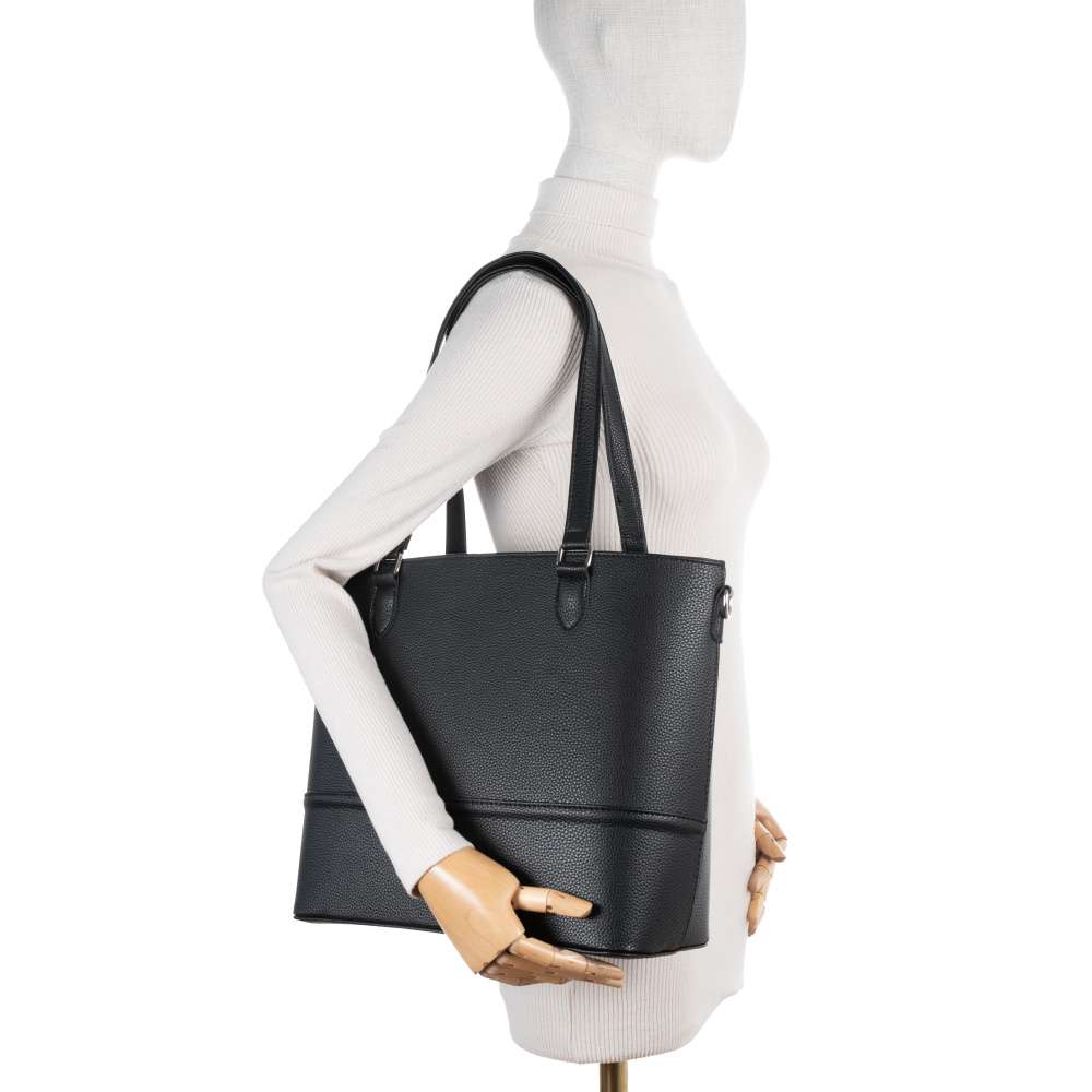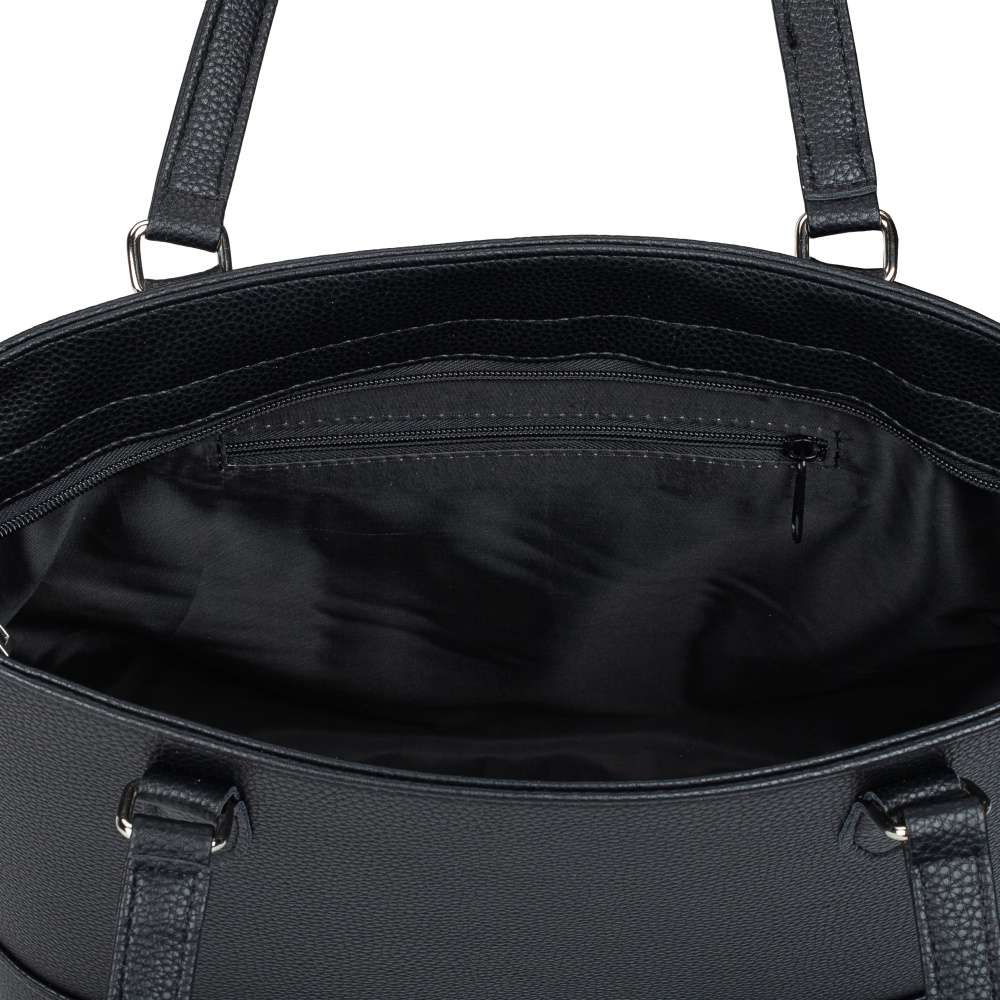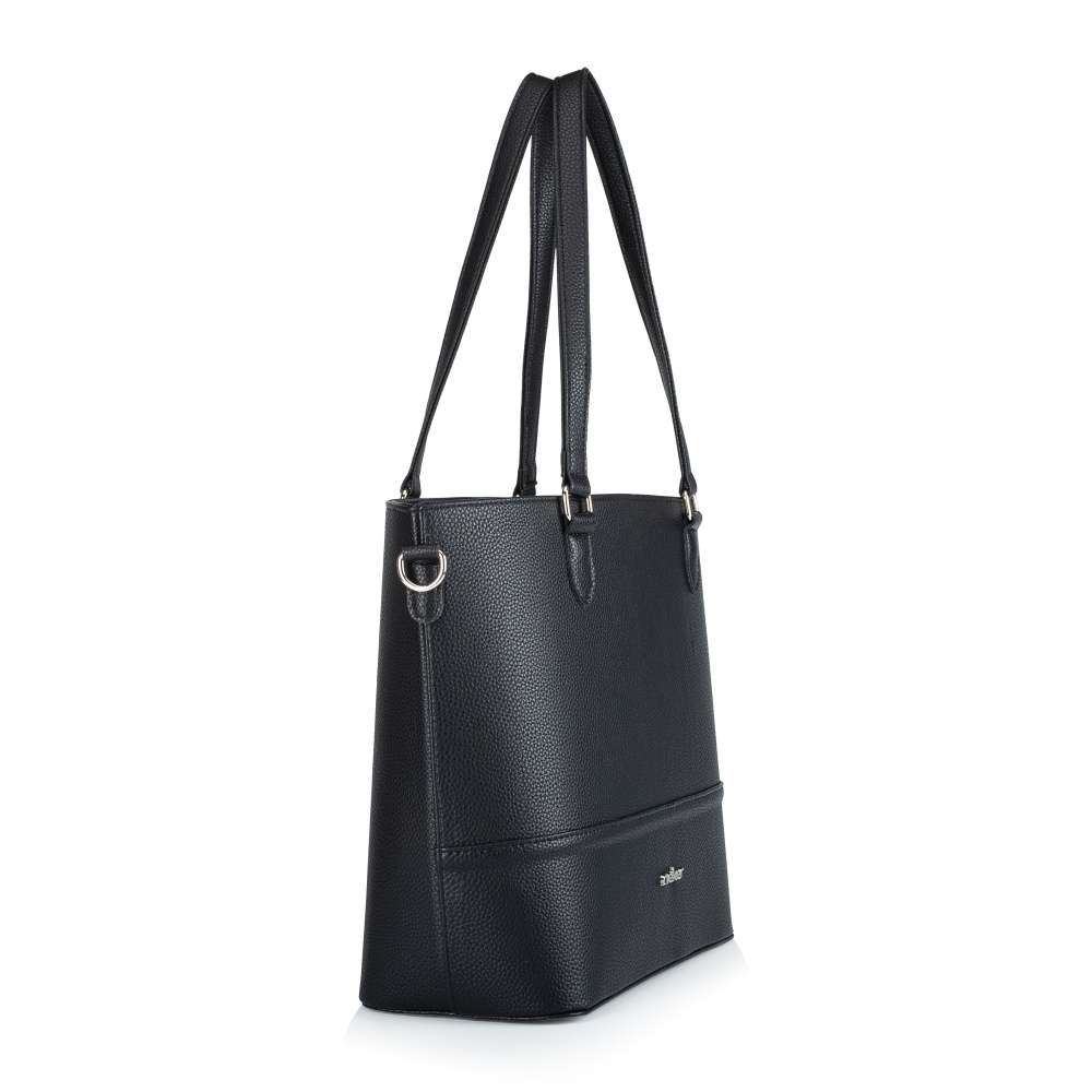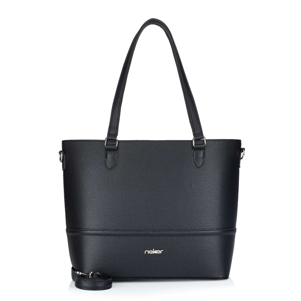 Hledáte doplněk, který se stane vaší nedílnou součástí každý den? Černá kabelka Rieker je stvořená pro ženy, které chtějí spojit praktičnost s módním vzhledem – bez kompromisů. Minimalistický design této kabelky doplňuje ikonický nápis RIEKER na přední straně s odlesky stříbrné barvy, díky kterému okamžitě vynikne váš cit pro styl. Z praktického hlediska je tato kabelka navržena tak, aby spolehlivě provázela moderní ženy po celý den. Zadní část nabízí praktickou kapsu na zip, ideální pro uložení drobností, které chcete mít okamžitě po ruce. Hlavní úložný prostor je prostorný a zabezpečený zipem, přičemž obsahuje dvě menší vnitřní přihrádky, jednu uzavíratelnou zipem a jednu otevřenou, pro snadnou organizaci a rychlý přístup k potřebným věcem. Kabelka je vybavena dvěma pevnými kratšími úchyty a odnímatelným, délkově nastavitelným popruhem, který umožňuje pohodlné nošení přes rameno. Takové řešení zaručuje maximální flexibilitu a komfort při každodenním používání. Rieker přináší doplněk, který vás nezklame – praktický, moderní a připravený držet krok s vaším tempem každý den. Objevte spojení funkčnosti a stylu, které budete milovat! Rozměry: cca V 30 cm x Š 38 cm x H 14 cm Vnitřní uspořádání: Kabelka není dělená. Kabelka má délkově nastavitelný popruh, který lze odepnout. Maximální délka nastavitelného popruhu je cca 125 cm. Délka popruhu pro nošení přes rameno je cca 60 cm.