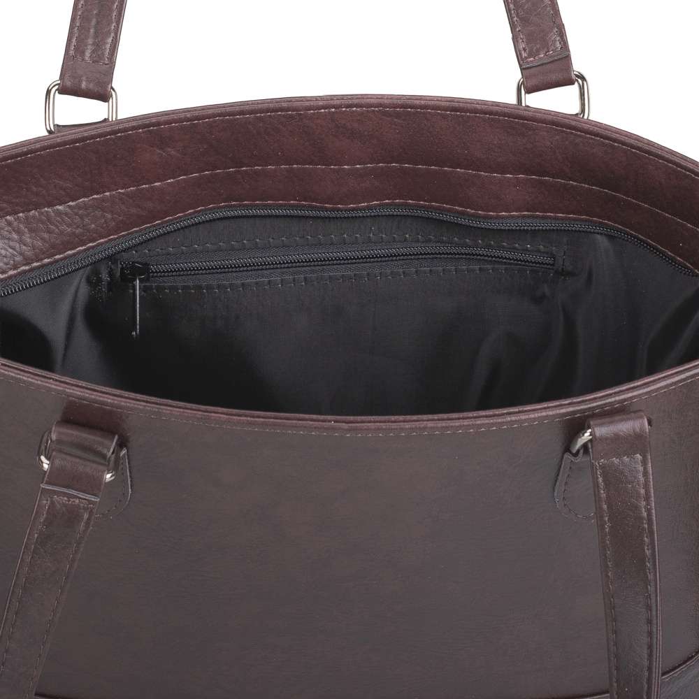 Kabelka v hnědém provedení je ztělesněním nadčasového vzhledu v módním stylu značky RIEKER. Tento model si okamžitě získá každou moderní ženu, která oceňuje vkusný design a praktická řešení pro každý den. Tmavší linie na povrchu dodávají kabelce vizuální dynamiku, zatímco decentní logo značky ve stříbrné barvě působí jako diskrétní, ale prestižní detail, který vyjadřuje originalitu. Z praktického hlediska je tato kabelka navržena tak, aby spolehlivě provázela moderní ženy po celý den. Zadní část nabízí praktickou kapsu na zip, ideální pro uložení drobností, které chcete mít okamžitě po ruce. Hlavní úložný prostor je prostorný a zabezpečený zipem, přičemž obsahuje dvě menší vnitřní přihrádky, jednu uzavíratelnou zipem a jednu otevřenou, pro snadnou organizaci a rychlý přístup k potřebným věcem. Kabelka je vybavena dvěma pevnými kratšími úchyty a odnímatelným, délkově nastavitelným popruhem, který umožňuje pohodlné nošení přes rameno. Takové řešení zaručuje maximální flexibilitu a komfort při každodenním používání. Tato kabelka se rychle stane neodmyslitelnou součástí vašeho šatníku, spolehlivým společníkem během dne a stylovým prvkem, který podtrhne vaši ženskost a osobitý vkus. Rozměry: cca V 30 cm x Š 38 cm x H 14 cm Vnitřní uspořádání: Kabelka není dělená. Kabelka má délkově nastavitelný popruh, který lze odepnout. Maximální délka nastavitelného popruhu je cca 125 cm. Délka popruhu pro nošení přes rameno je cca 60 cm.