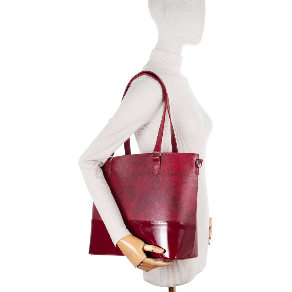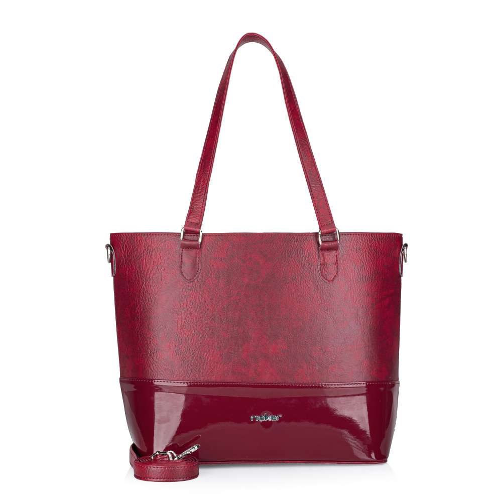 Estetická přitažlivost této kabelky RIEKER pramení z dokonalé souhry matného a lesklého materiálu, které se navzájem doplňují a vytváří elegantní vizuální kontrast. Stříbrné logo značky na přední straně decentně podtrhuje prémiový charakter kabelky a dodá punc originality. Z praktického hlediska je tato kabelka navržena tak, aby spolehlivě provázela moderní ženy po celý den. Zadní část nabízí praktickou kapsu na zip, ideální pro uložení drobností, které chcete mít okamžitě po ruce. Hlavní úložný prostor je zabezpečený zipem, přičemž obsahuje dvě menší vnitřní přihrádky, jednu uzavíratelnou zipem a jednu otevřenou, pro snadnou organizaci a rychlý přístup k potřebným věcem. Kabelka je vybavena dvěma pevnými kratšími úchyty a odnímatelným, délkově nastavitelným popruhem, který umožňuje pohodlné nošení přes rameno. Takové řešení zaručuje maximální flexibilitu a komfort při každodenním používání. Kabelka RIEKER je dokonalou volbou pro ženy, které hledají spojení vizuální přitažlivosti a každodenní praktičnosti. Díky svému promyšlenému designu pozvedne každý outfit a dodá mu půvabnou, rafinovanou ženskost. Rozměry: cca V 30 cm x Š 38 cm x H 14 cm Vnitřní uspořádání: Kabelka není dělená. Kabelka má délkově nastavitelný popruh, který lze odepnout. Maximální délka nastavitelného popruhu je cca 125 cm. Délka popruhu pro nošení přes rameno je cca 60 cm.