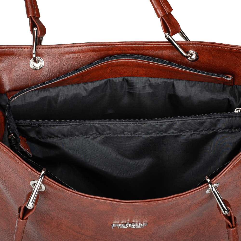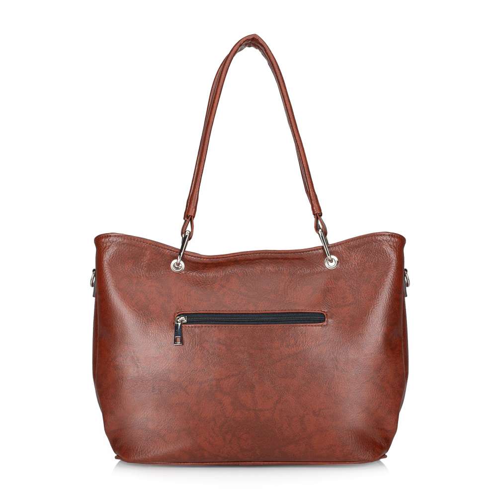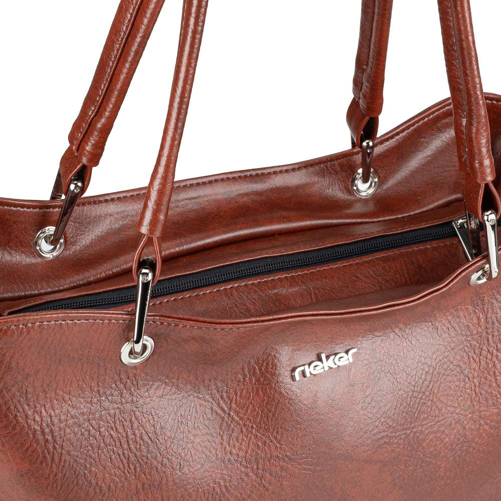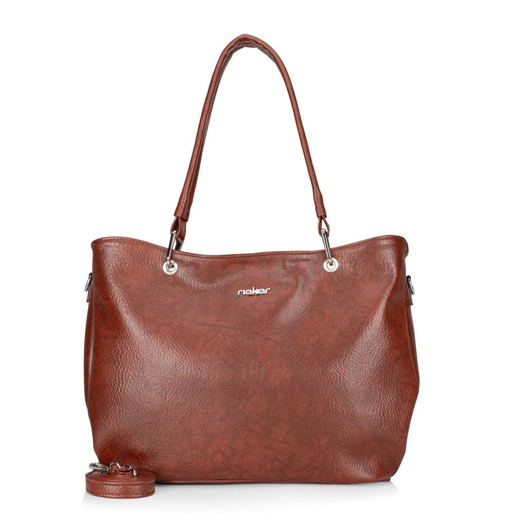 Detailní informace Tato kabelka RIEKER je výjimečná svým univerzálním charakterem a nadčasovým provedením hnědého svršku dekorovaného tmavšími liniemi a ikonickým logem značky ve stříbrné barvě, které jí dodává punc originality. Vrchní zip otevírá promyšlené vnitřní členění s rozdělením na dvě části středovou kapsou se zipem, což zajistí přehledné uspořádání všech vašich věcí, nechybí ani menší přihrádky na drobnosti a praktická vnější kapsa na zip. Díky možnosti nošení se dvěma kratšími úchyty nebo s délkově nastavitelným odnímatelným popruhem – se kabelka přizpůsobí vašim potřebám a stylu. Spojení promyšleného designu, kvalitního zpracování a pohodlného nošení z ní činí nenahraditelného společníka pro každý den.