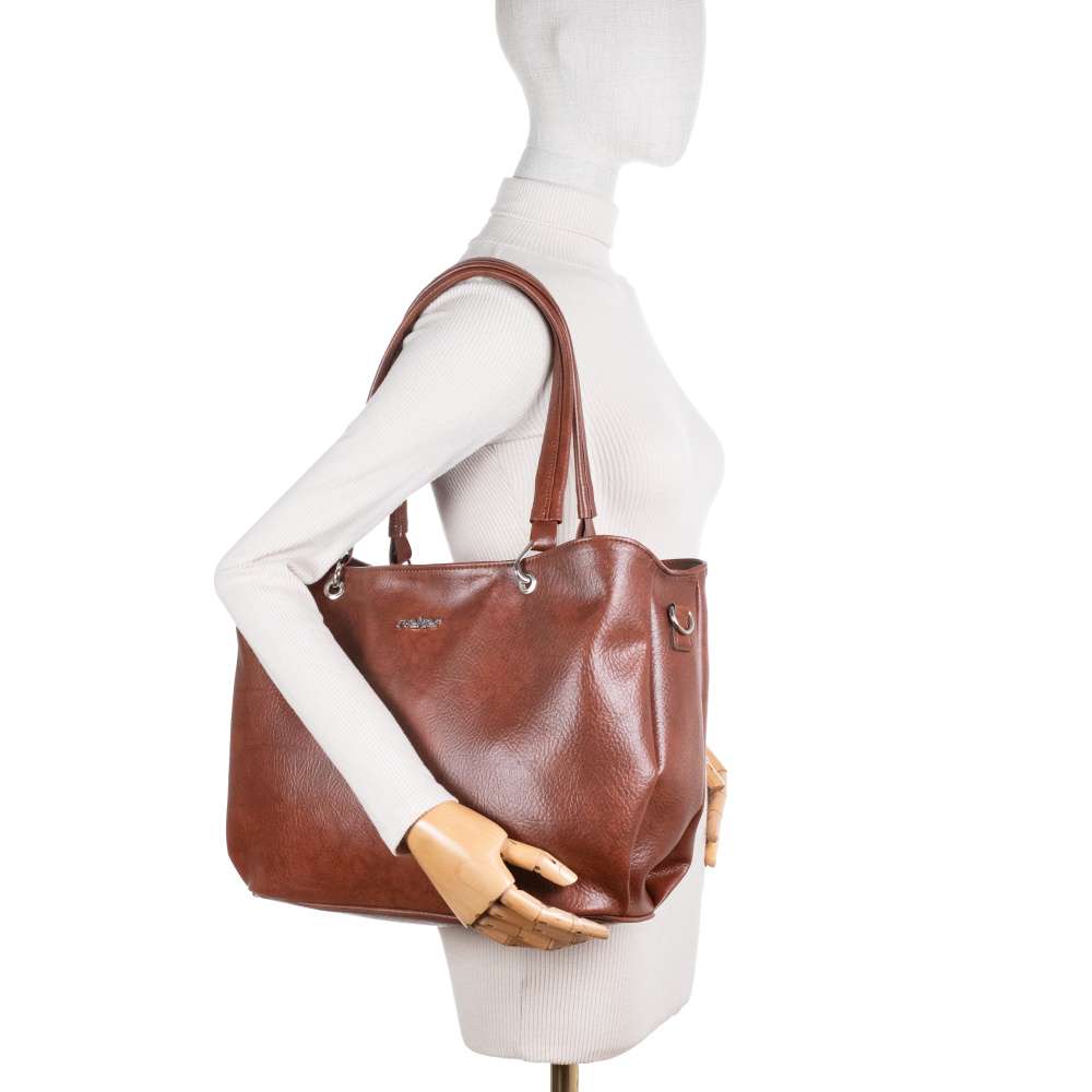 Tato kabelka RIEKER je výjimečná svým univerzálním charakterem a nadčasovým provedením hnědého svršku dekorovaného tmavšími liniemi a ikonickým logem značky ve stříbrné barvě, které jí dodává punc originality. Vrchní zip otevírá promyšlené vnitřní členění s rozdělením na dvě části středovou kapsou se zipem, což zajistí přehledné uspořádání všech vašich věcí, nechybí ani menší přihrádky na drobnosti a praktická vnější kapsa na zip. Díky možnosti nošení se dvěma kratšími úchyty nebo s délkově nastavitelným odnímatelným popruhem – se kabelka přizpůsobí vašim potřebám a stylu. Spojení promyšleného designu, kvalitního zpracování a pohodlného nošení z ní činí nenahraditelného společníka pro každý den. Rozměry: cca V 30 cm x Š 36 cm x H 11 cm Vnitřní uspořádání: kabelka je dělená. Kabelka má délkově nastavitelný popruh, který lze odepnout. Maximální délka nastavitelného popruhu je cca 130 cm. Délka popruhu pro nošení přes rameno je cca 60 cm.