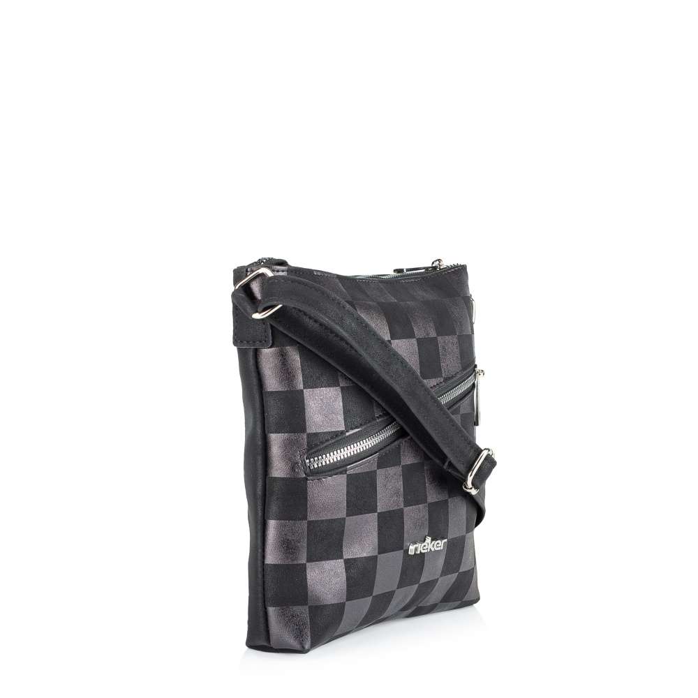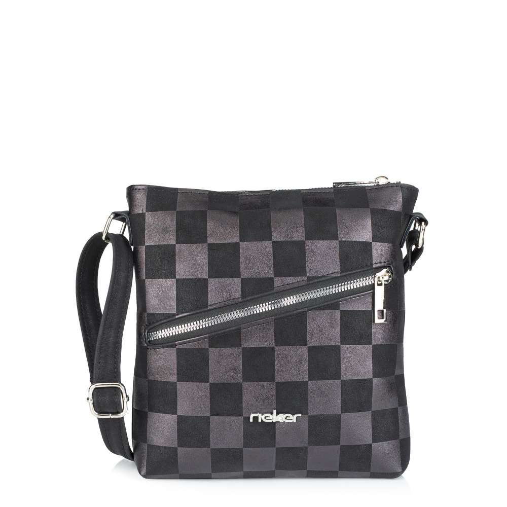 Tato kabelka značky RIEKER je ukázkou dokonalé rovnováhy mezi módním vzhledem a praktickým využitím. Svršek kabelky kombinuje matné a lesklé čtvercové vzory, které vytváří zajímavý vizuální efekt a jemné stříbrné logo značky podtrhuje její jedinečný design. Přední část je vybavena kapsičkou s výrazným zipem a zadní část je také vybavena menší kapsičkou, obě poslouží na drobnosti, ke kterým potřebujete rychlý přístup. Hlavní prostor je uzavíratelný zipem a uvnitř naleznete další přihrádky pro přehledné uspořádání vašich věcí. Díky délkově nastavitelnému popruhu si ji můžete přizpůsobit podle svých potřeb a nosit ji pohodlně přes rameno nebo křížem přes tělo. Kabelka nabízí ideální kombinaci stylu a funkčnosti – úložný prostor s přehledným vnitřním členěním a nápaditý design z ní dělají skvělého společníka pro každý den. Rozměry: cca V 22 cm x Š 20 cm x H 3 cm Vnitřní uspořádání: kabelka není dělená. Kabelka má délkově nastavitelný popruh, který nelze odepnout. Maximální délka nastavitelného popruhu je cca 125 cm.