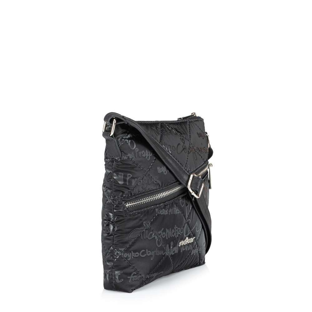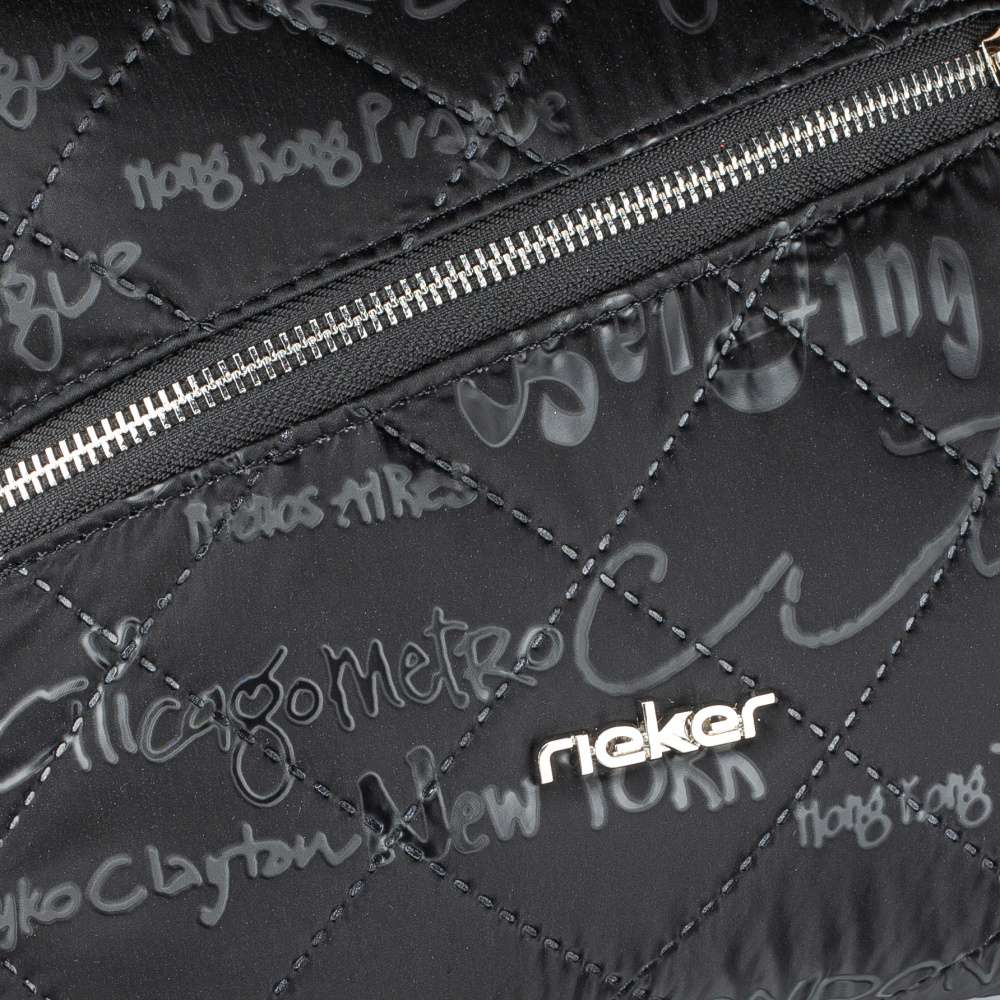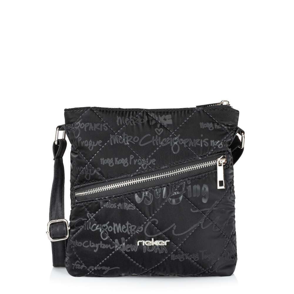 Značka RIEKER přináší tento stylový model kabelky, který zvýrazní vaši originalitu a dodá vám nepřehlédnutelný půvab. Textilní svršek dekorují atraktivní nápisy a ikonické logo značky stříbrné barvy dodá náležitý punc originality. Kabelka poskytuje nejen originální vzhled, ale také praktické uspořádání uložených věcí. Přední část je vybavena kapsou s výrazným zipem, vnitřní uspořádání nabízí praktický prostor pro uložení věcí a nacházejí se zde dvě menší přihrádky na drobnosti. Na zadní straně kabelky je další kapsa se zipem pro snadný přístup k nezbytnostem. Variabilní možnosti nošení umožňuje délkově nastavitelný popruh, kterým si vytvoříte dokonalé pohodlí při nošení. Tato kabelka je ideální volbou pro ženy, které chtějí spojit stylový vzhled s praktickým využitím v každodenním životě. Rozměry: cca V 22 cm x Š 20 cm x H 3 cm Vnitřní uspořádání: kabelka není dělená. Kabelka má délkově nastavitelný popruh, který nelze odepnout. Maximální délka nastavitelného popruhu je cca 125 cm.