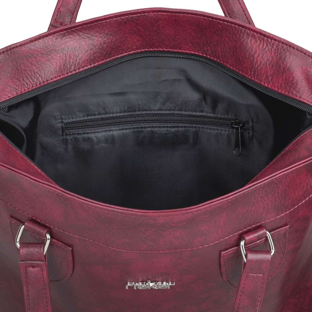 Tato kabelka značky RIEKER v poutavém červeném provedení s jemnými tmavšími liniemi představuje dokonalé spojení atraktivního designu a praktičnosti, které ocení každá moderní žena. Čisté linie kabelky podtrhuje decentní stříbrné logo značky, které dodává modelu originální nádech. Praktická řešení jsou promyšlena do posledního detailu. Zadní kapsa na zip umožňuje rychlý přístup k drobnostem, které potřebujete mít stále po ruce, zatímco prostorný hlavní úložný prostor se zapínáním na zip poskytuje dostatek místa pro všechny nezbytnosti každodenního života. Vnitřní dvě menší přihrádky pomáhají udržet pořádek a organizaci, takže vše máte vždy přehledně uloženo a snadno dostupné. Kabelka je navržena s důrazem na flexibilitu nošení. Dvě pevné uši umožňují pohodlné držení v ruce, zatímco délkově nastavitelný a odnímatelný popruh nabízí možnost nošení přes rameno, v závislosti na vašem aktuálním outfitu a preferencím. Tato variabilita z ní činí ideální doplněk pro každý den – ať už jedete do práce, na procházku městem nebo na setkání s přáteli. Červený odstín kabelky přitáhne pozornost a dodá vašim outfitům výrazný módní akcent, zatímco promyšlené funkční detaily zajišťují, že zůstává praktická a pohodlná při každém použití. Výsledkem je kabelka, která spojuje styl, komfort a funkčnost. Rozměry: cca V 30 cm x Š 38 cm x H 15 cm Vnitřní uspořádání: kabelka není dělená. Kabelka má délkově nastavitelný popruh, který lze odepnout. Maximální délka nastavitelného popruhu je cca 120 cm.