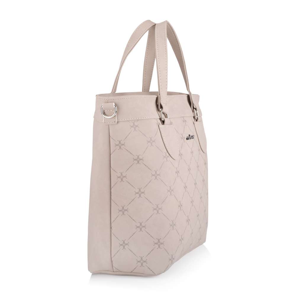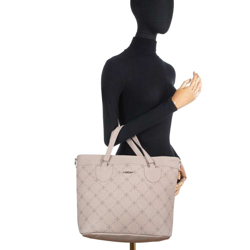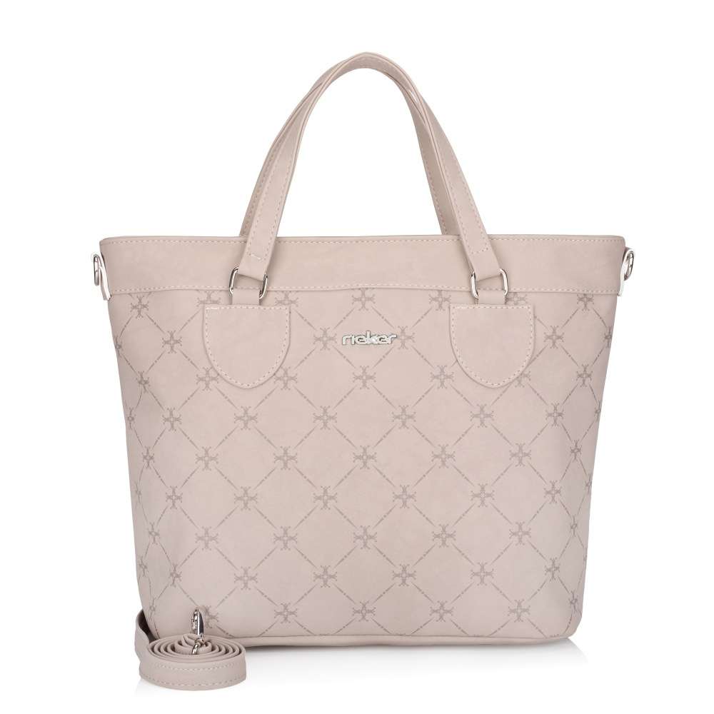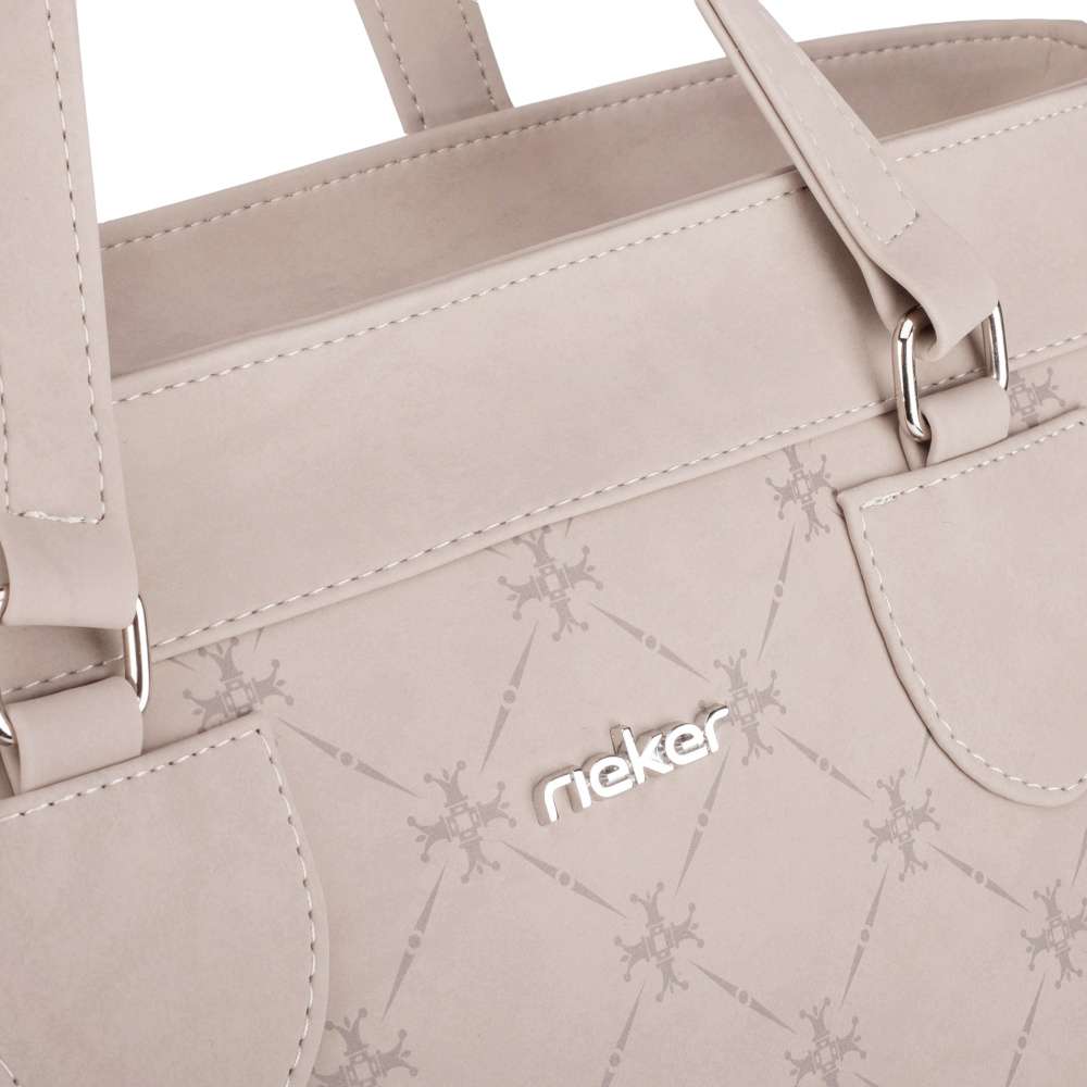 Tato kabelka značky RIEKER je vyjímečným kouskem, který dokonale spojuje moderní design a praktické využití. Zaujme svým atraktivním vzhledem vytvořeným béžovou barvou svršku dekorovanou originálním vzorem, který dodává kabelce charakter, zatímco stříbrné logo značky podtrhuje její prémiový vzhled. Kromě estetického vzhledu nabízí kabelka také promyšlenou funkčnost. Zadní kapsa na zip nabízí rychlý přístup k drobnostem, zatímco prostorný hlavní prostor uzavíratelný zipem obsahuje dvě menší přihrádky pro praktickou organizaci vašich věcí. Kabelka je vybavena dvěma pevnými uchy pro nošení v ruce a nastavitelným, odnímatelným popruhem, díky čemuž se přizpůsobí vašemu stylu i potřebám. Tato kabelka v sobě spojuje moderní design, kvalitní zpracování a praktická řešení, která ocení každá žena, hledající módní a funkční doplněk. Rozměry: cca V 30 cm x Š 38 cm x H 15 cm Vnitřní uspořádání: kabelka není dělená. Kabelka má délkově nastavitelný popruh, který lze odepnout. Maximální délka nastavitelného popruhu je cca 130 cm.