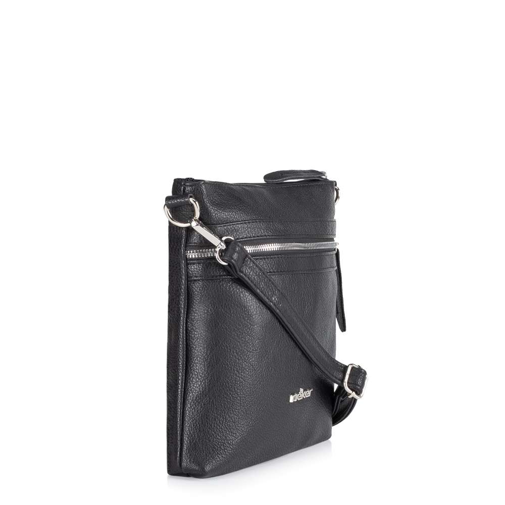 Detailní informace Tato kabelka RIEKER v nadčasové černé barvě je dokonalým spojením funkčnosti a prémiového zpracování, ideální pro moderní ženu, která hledá stylový doplněk s praktickým využitím každý den. Její minimalistický design je zdoben decentním stříbrným logem značky RIEKER, které jemně zvýrazňuje charakter kabelky, čímž podtrhuje její kvalitu. Přední kapsička se zipem je navržena na drobnosti, které chcete mít rychle po ruce a zadní kapsička se zipem poskytuje dodatečný úložný prostor pro praktické uspořádání menších předmětů, které potřebujete mít bezpečně uloženo. Hlavní prostor kabelky se uzavírá vrchním zipem a je vybaven dvěma menšími přihrádkami, z nichž jedna je otevřena pro rychlý přístup k věcem a druhá uzavírána zipem, ideální pro bezpečné uložení drobných věcí. Kabelka je vybavena délkově nastavitelným a odepínatelným popruhem, který umožňuje variabilní nošení. Díky tomu si každý může přizpůsobit nošení dle vlastních preferencí a situace. Tato kabelka RIEKER je proto dokonalým spojením stylu, funkčnosti a komfortu, který potěší každou ženu, která hledá kvalitní módní doplněk pro každý den. Její univerzální design, praktické detaily a kvalitní zpracování z ní dělají neodmyslitelnou součást šatníku, která zaručeně upoutá pozornost a zároveň poskytne komfortní a pohodlné nošení.