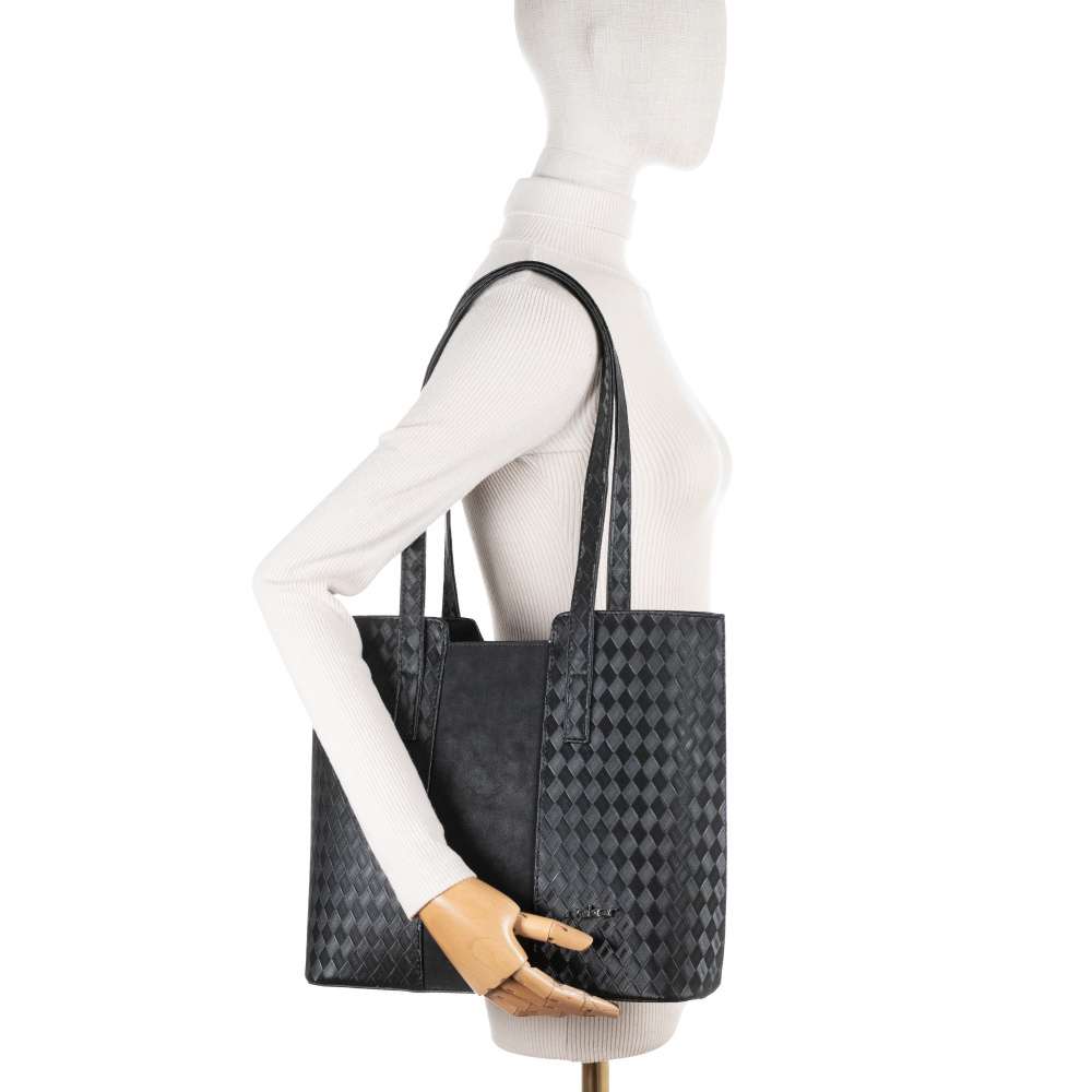 Estetickou atraktivitu této kabelky RIEKER vytváří efektní kombinace dvou typů materiálů – hladkého povrchu, který přináší čistotu a uhlazenost, a materiálu s působivou strukturou vzoru, která dodává vizuální kontrast. Už na první pohled zaujme svým moderním tvarováním a originálním spojením dílů přední části. Z praktického hlediska je tato kabelka navržena tak, aby spolehlivě provázela moderní ženy po celý den. Na zadní straně se nachází menší zipová kapsička, ideální pro uložení drobných předmětů, které chcete mít okamžitě po ruce bez potřeby otevírání hlavního prostoru. Vrchní zip vede do prostorného interiéru, který nabízí přehledné uspořádání – jednu bezpečnou vnitřní přihrádku se zipem na cennosti a druhou otevřenou přihrádku určenou pro drobnosti, které potřebujete mít rychle dostupné. Kabelka disponuje dvěma pevnými, delšími popruhy, které zaručují pohodlné nošení přes rameno i při delším používání. Promyšlené podšití a pevná konstrukce kabelky zajišťují, že si udrží svůj tvar i po delším nošení. Kabelka RIEKER je dokonalou volbou pro ženy, které hledají spojení vizuální přitažlivosti a každodenní praktičnosti. Díky svému promyšlenému designu pozvedne každý outfit a dodá mu půvabnou, rafinovanou ženskost. Rozměry: cca V 30 cm x Š 34 cm x H 12 cm Vnitřní uspořádání: Kabelka není dělená. Délka popruhu pro nošení přes rameno je cca 60 cm.