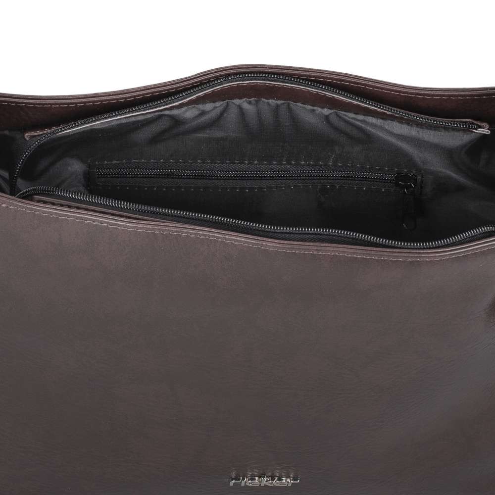 Detailní informace Kabelka RIEKER v hnědém provedení je přesně tím kouskem, který kombinuje praktičnost a styl, abyste se cítili sebevědomě při každé příležitosti. Tmavší linie na povrchu dodávají kabelce vizuální dynamiku, zatímco decentní logo značky ve stříbrné barvě působí jako diskrétní, ale prestižní detail, který vyjadřuje originalitu. Tato kabelka RIEKER není jen estetickým doplňkem vašeho vzhledu, ale stává se praktickým společníkem pro každý den. Přední část kabelky je minimalistická a elegantní, zatímco zadní strana nabízí diskrétní kapsu na zip, ideální na drobnosti, ke kterým potřebujete rychlý přístup. Hlavní prostor kabelky je uzavíratelný zipem a poskytuje dostatek místa pro všechny vaše každodenní nezbytnosti, vnitřní členění s menšími kapsami umožňuje dokonalý přehled a jednoduchou organizaci vašich věcí. O pohodlné nošení se stará elegantní popruh s dekorativní sponou, který umožňuje kabelku nosit stylově a zároveň komfortně přes rameno. Tato kabelka je ideální pro všechny ženy, které chtějí působit stylově a cítit se výjimečně každý den – ať už jedete do práce, na setkání s přáteli nebo na procházku městem.