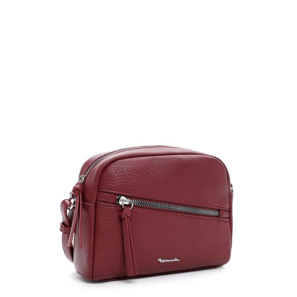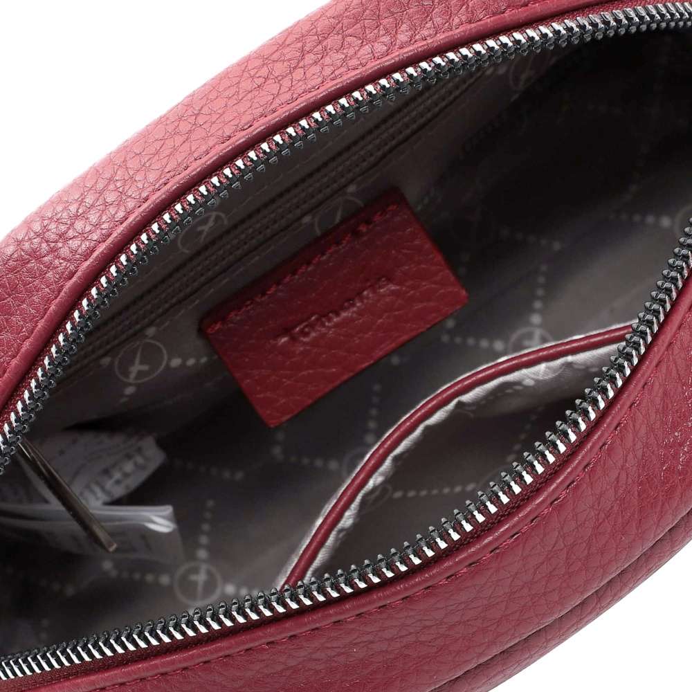 Tmavě červená kabelka Tamaris je působivý doplněk s výrazným zipem na přední části, který uzavírá kapsičku a je zde také umístěno logo značky. Další kapsička se nachází na zadní části kabelky pro snadný přístup k drobnostem. Úložný prostor s dvěma malými kapsičkami je uzavřen zipem, což zajišťuje bezpečné uložení osobních věcí. Kabelka je vybavena nastavitelným popruhem, který umožňuje pohodlné nošení přes rameno nebo přes tělo podle potřeby. Tento praktický a stylový doplněk je ideální pro každodenní použití a dodává outfitu elegantní a moderní vzhled. Rozměry: cca V 16 cm x Š 20 cm x H 5 cm Vnitřní uspořádání: kabelka není dělená Kabelka má délkově nastavitelný popruh, který nelze odepnout.
