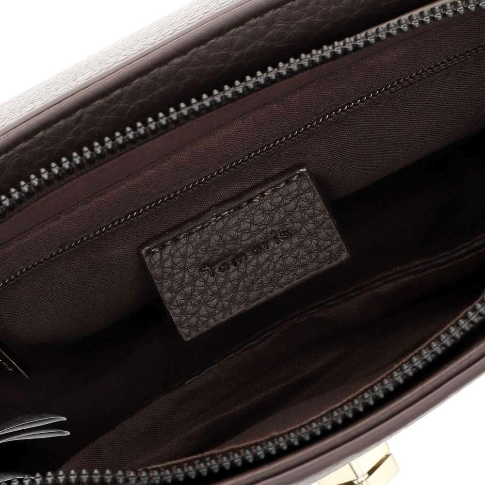 Hnědá kabelka značky Tamaris představuje nadčasový kousek, který by neměl chybět v šatníku žádné moderní ženy. Její klasický vzhled v černém provedení je doplněn výrazným zapínáním ve zlaté barvě, jež působí elegantně a dodává kabelce luxusní nádech. Tento detail okamžitě přitahuje pozornost a činí z kabelky nejen praktický, ale také stylový doplněk. Po otevření hlavního prostoru, který je chráněn vrchním odklápěcím dílem a zipem, objevíte promyšleně navržený interiér. Najdete zde dvě menší kapsičky – jednu otevřenou, která umožňuje rychlý přístup k drobným předmětům, a druhou uzavíratelnou zipem, která se skvěle hodí pro bezpečné uložení cenností. Pro ještě více komfortu je na zadní straně kabelky umístěna menší kapsa na zip. Výhodou této kabelky je odnímatelný a délkově nastavitelný popruh. Díky němu si ji můžete přizpůsobit svému stylu a náladě – nosit ji pohodlně přes rameno nebo křížem přes tělo. Tento model od Tamaris dokonale propojuje funkčnost s moderním designem a nadčasovou elegancí. Je důkazem, že černá klasika nikdy nevyjde z módy, a zároveň dokáže zvýraznit osobitý styl své majitelky. Rozměry: cca V 17 cm x Š 23 cm x H 7 cm Vnitřní uspořádání: kabelka není dělená Kabelka má délkově nastavitelný popruh, který lze odepnout.