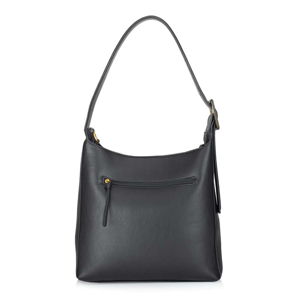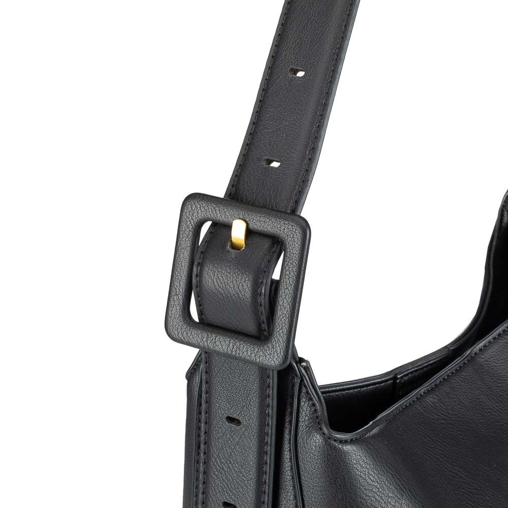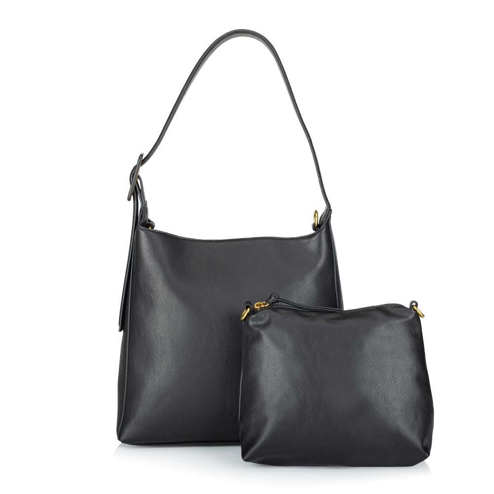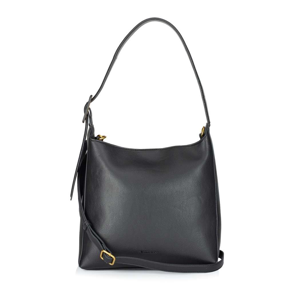 Čisté linie a nadčasový odstín černé dělají z této kabelky Tamaris univerzální doplněk pro každý den. Přední část zdobí decentní logo značky, zatímco na zadní straně se nachází praktická kapsa se zipem. Hlavní vnitřní prostor se uzavírá magnetickým klipem a nabízí dvě menší přihrádky - jednu se zipem a druhou otevřenou pro rychlý přístup k uloženým věcem. Součástí je také samostatná menší kabelka, kterou můžete nosit odděleně díky délkově nastavitelnému popruhu, nebo ji pohodlně vložit do větší kabelky a vytvořit si další samostatný prostor. Širší popruh hlavní kabelky je vybaven přezkou pro snadné přizpůsobení délky, čímž se postará o pohodlí během celého dne. Nadčasový vzhled kabelky Tamaris se hodí k běžným i výjimečným dnům každé ženy se smyslem pro styl. Rozměry: cca V 27 cm x Š 30 cm x H 12 cm Vnitřní uspořádání: kabelka není dělená Kabelka má délkově nastavitelný popruh, který lze odepnout. Maximální délka nastavitelného popruhu je cca 130 cm.