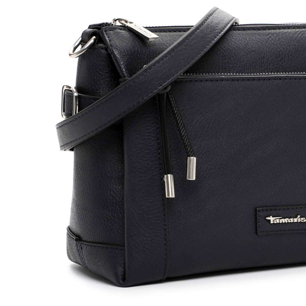 Kabelka Tamaris v klasickém tmavě modrém provedení je skvělou volbou pro každodenní nošení, její univerzální styl doplňují boční dekorativní prvky dodávající kabelce jemný stylový akcent. Na přední straně ji zdobí decentní stříbrné logo značky a menší kapsička na zip, kam pohodlně uložíte drobnosti, které potřebujete mít rychle po ruce. Hlavní prostor je uzavíratelný zipem a rozdělený na tři samostatní částí pro přehlednou organizaci – středová kapsa se zapínáním ukrývá dvě menší přihrádky, zatímco po stranách najdete otevřené úložné prostory. Zadní zipová kapsa je ideální pro nezbytnosti, které chcete mít rychle dostupné. Díky nastavitelnému a odnímatelnému popruhu si můžete kabelku přizpůsobit podle svých potřeb. Díky kombinaci praktického členění a nadčasového provedení je tato kabelka skvělou volbou pro každý den. Rozměry: cca V 19 cm x Š 25 cm x H 10 cm Vnitřní uspořádání: kabelka je dělená Kabelka má délkově nastavitelný popruh, který lze odepnout.