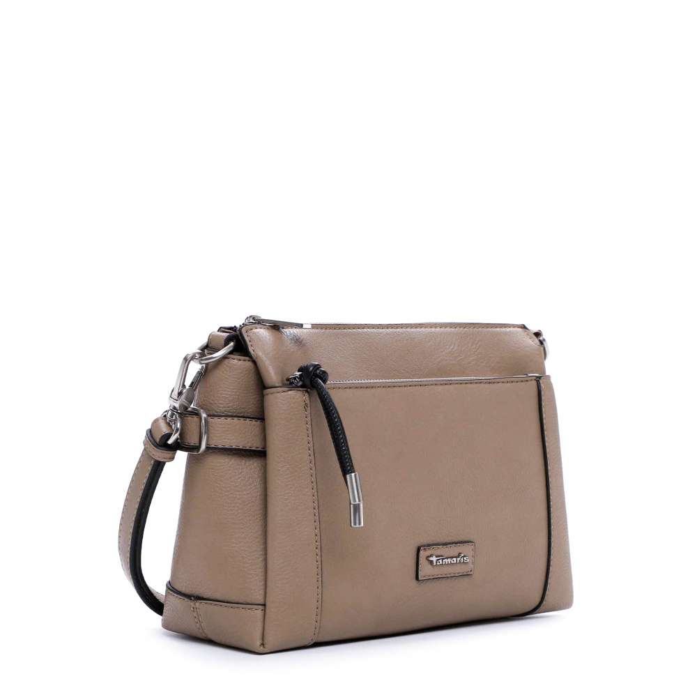Kabelka Tamaris v klasickém béžovém provedení je skvělou volbou pro každodenní nošení, její univerzální styl doplňují boční dekorativní prvky dodávající kabelce jemný stylový akcent. Na přední straně ji zdobí decentní stříbrné logo značky a menší kapsička na zip, kam pohodlně uložíte drobnosti, které potřebujete mít rychle po ruce. Hlavní prostor je uzavíratelný zipem a rozdělený na tři samostatní částí pro přehlednou organizaci – středová kapsa se zapínáním ukrývá dvě menší přihrádky, zatímco po stranách najdete otevřené úložné prostory. Zadní zipová kapsa je ideální pro nezbytnosti, které chcete mít rychle dostupné. Díky nastavitelnému a odnímatelnému popruhu si můžete kabelku přizpůsobit podle svých potřeb. Díky kombinaci praktického členění a nadčasového provedení je tato kabelka skvělou volbou pro každý den. Rozměry: cca V 19 cm x Š 25 cm x H 10 cm Vnitřní uspořádání: kabelka je dělená Kabelka má délkově nastavitelný popruh, který lze odepnout.