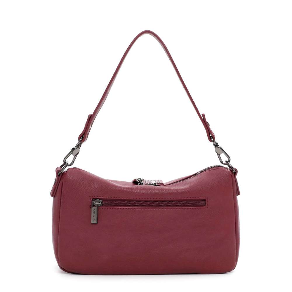 Červená kabelka Tamaris je důkazem, že méně je někdy víc, její čisté linie doplňuje decentní logo značky na přední straně vystihující originalitu tohoto modelu. Praktická zadní kapsička na zip umožňuje rychlý přístup k drobnostem, zatímco hlavní prostor uzavíratelný zipem s atraktivní visačkou nabízí přehledné uspořádání – nechybí dvě menší vnitřní přihrádky ideální na klíče, mobil nebo kosmetiku. Kabelku lze nosit dvěma způsoby: pomocí kratšího pevného ucha zdobeného jemnými aplikacemi pro atraktivní vzhled, nebo s nastavitelným ramenním popruhem pro pohodlné nošení přes rameno či přes tělo. Oba popruhy jsou odnímatelné, takže si styl nošení snadno přizpůsobíte svým potřebám. Univerzální doplněk v působivém provedení, který perfektně zapadne jak do každodenního outfitu, tak i do slavnostnějších příležitostí. Rozměry: cca V 17 cm x Š 27 cm x H 10 cm Vnitřní uspořádání: kabelka není dělená Kabelka má délkově nastavitelný popruh, který lze odepnout.