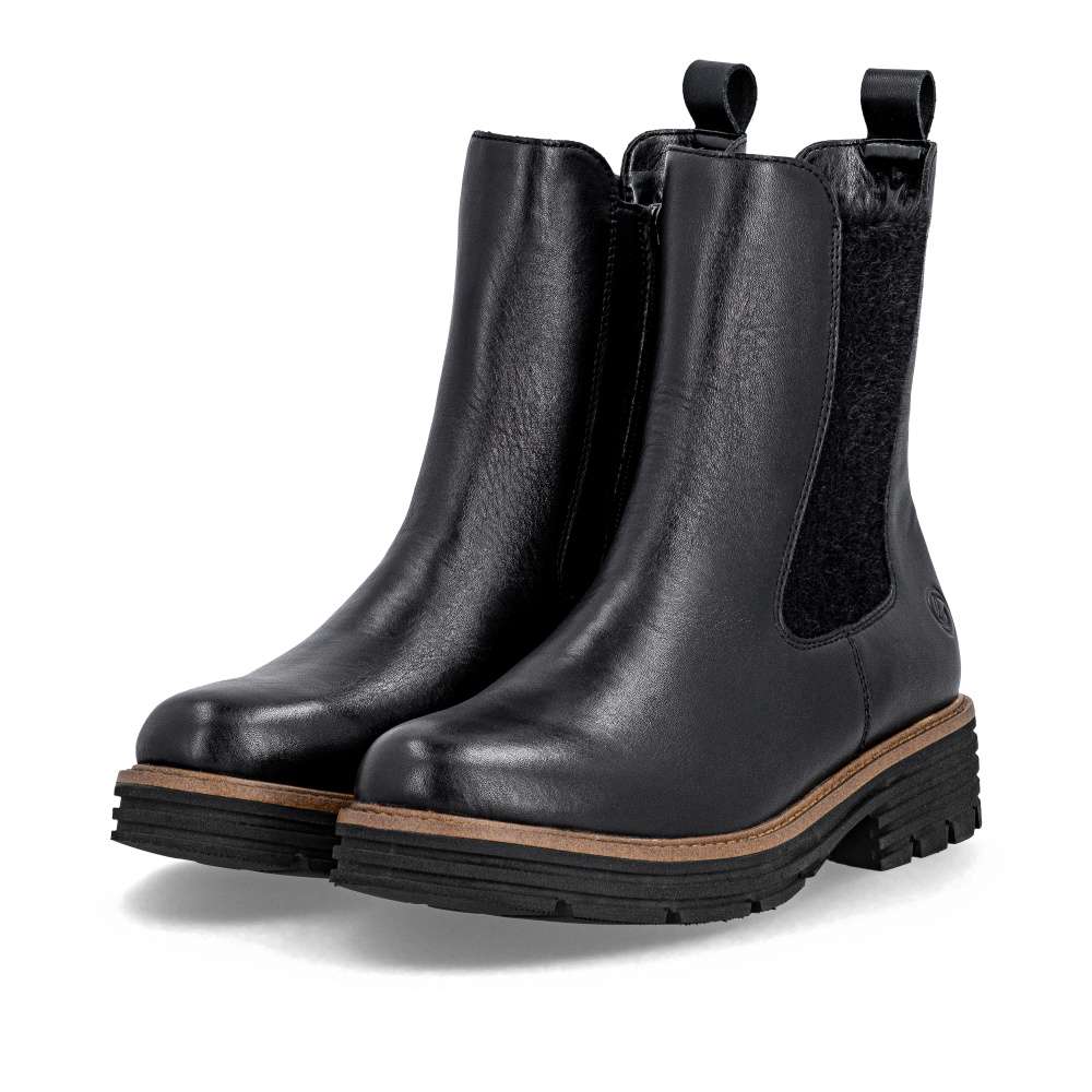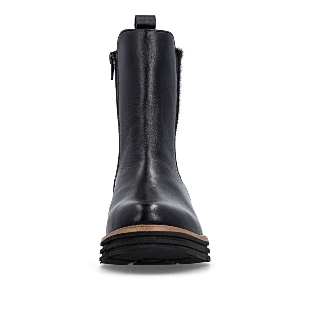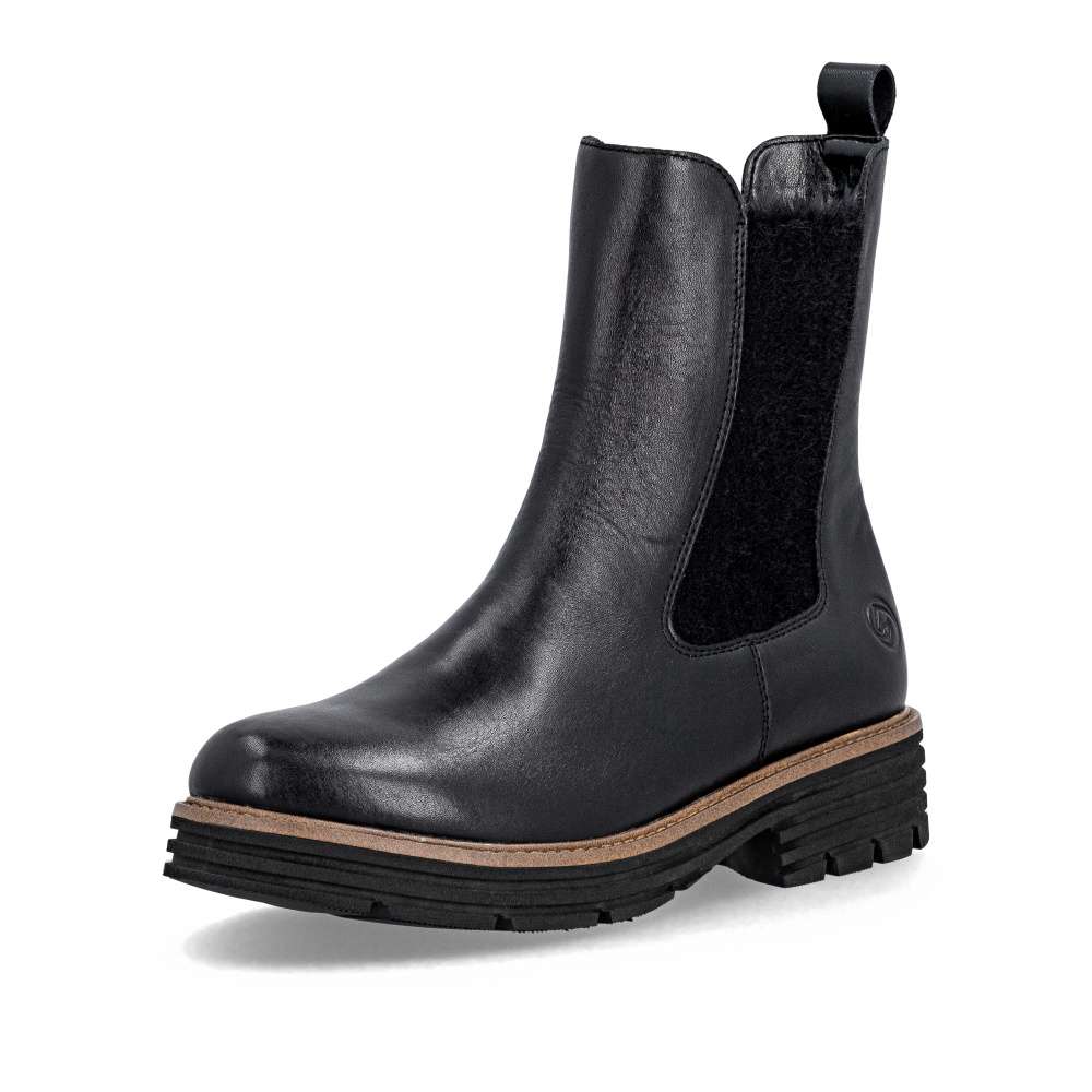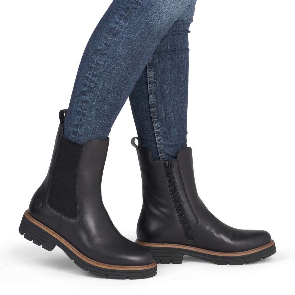 Obuv REMONTE – jedná se o vyšší řadu značky RIEKER, tato obuv se vyznačuje vynikající kombinací svrchních materiálů. Pro každou moderní ženu je tento model od značky RIEKER nezbytností v šatníku. Černý kožený svršek s atraktivním pružným dílem a logem značky představuje spojení módního vzhledu a funkčnosti. Díky zipu umístěnému na vnitřní straně boty je nazouvání jednoduché, nazutí poskytne pohodlí vyjímatelné stélky a zateplení pravou ovčí vlnou poskytující optimální tepelný komfort za každého počasí. Podešev s výrazným vzorem dodává obuvi jedinečný vzhled svým světlým lemem a navíc zajišťuje stabilní krok. Tyto kotníkové boty jsou skvělou volbou pro každodenní nošení a budou dokonalým doplňkem každého outfitu. Technologie: Lite'n Soft - maximální komfort při nošení vytváří kombinace lehké podešve, velmi příjemných materiálů a komfortní stélky. Podšívka je z pravé ovčí vlny. Tato bota je vybavena vyjímatelnou stélkou.