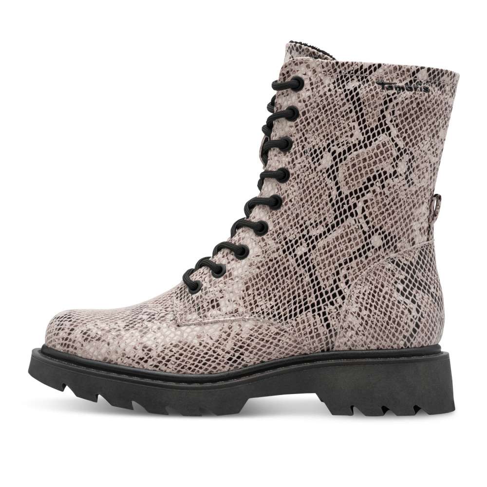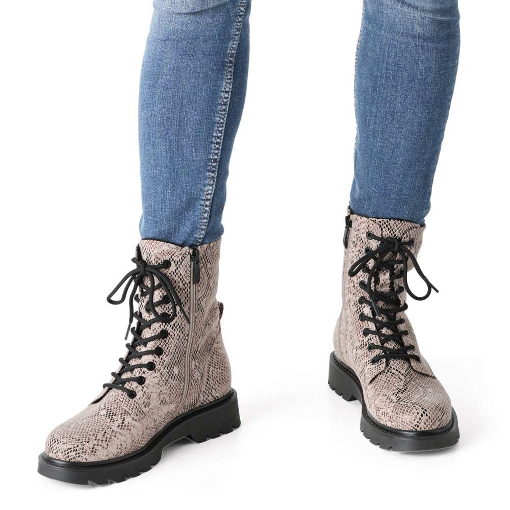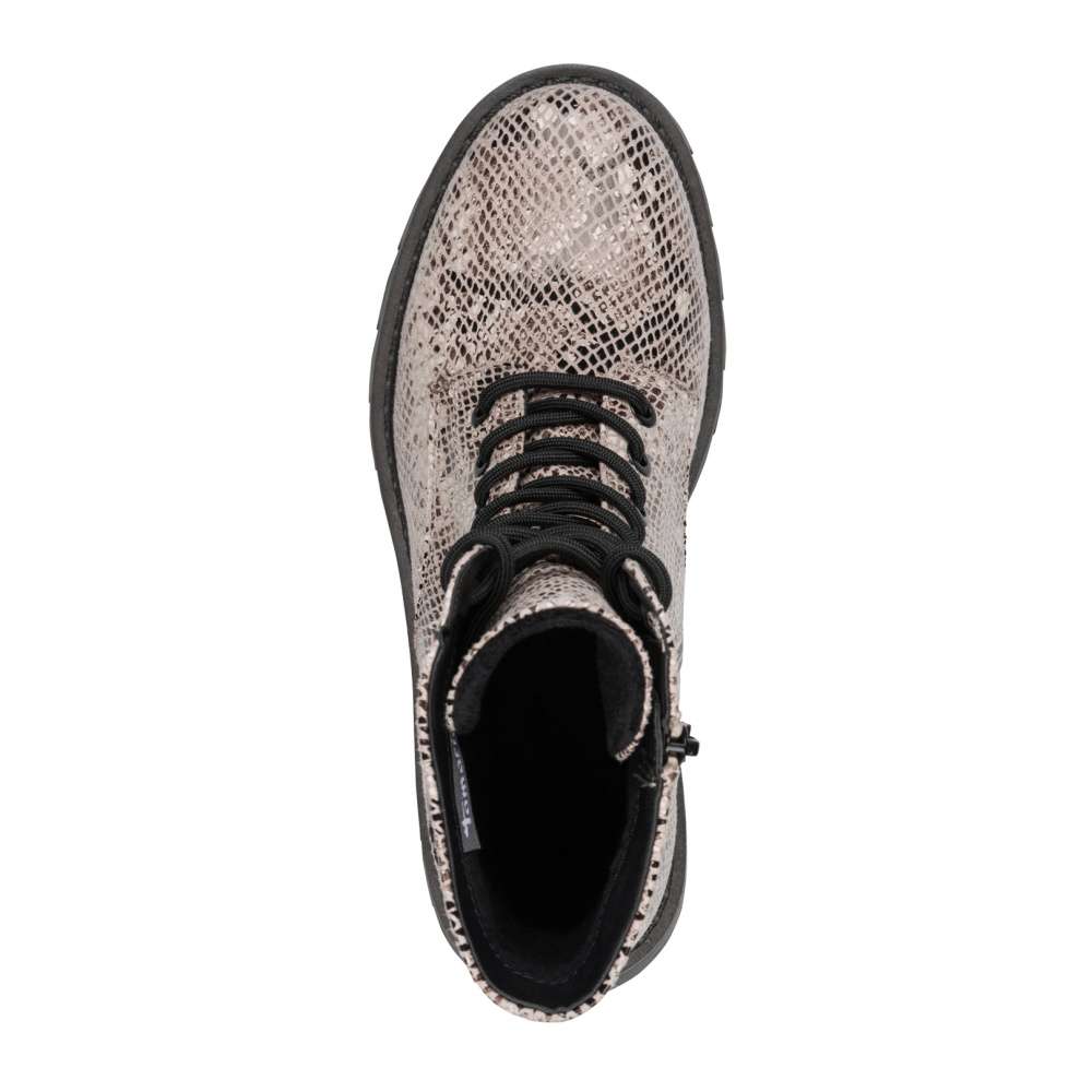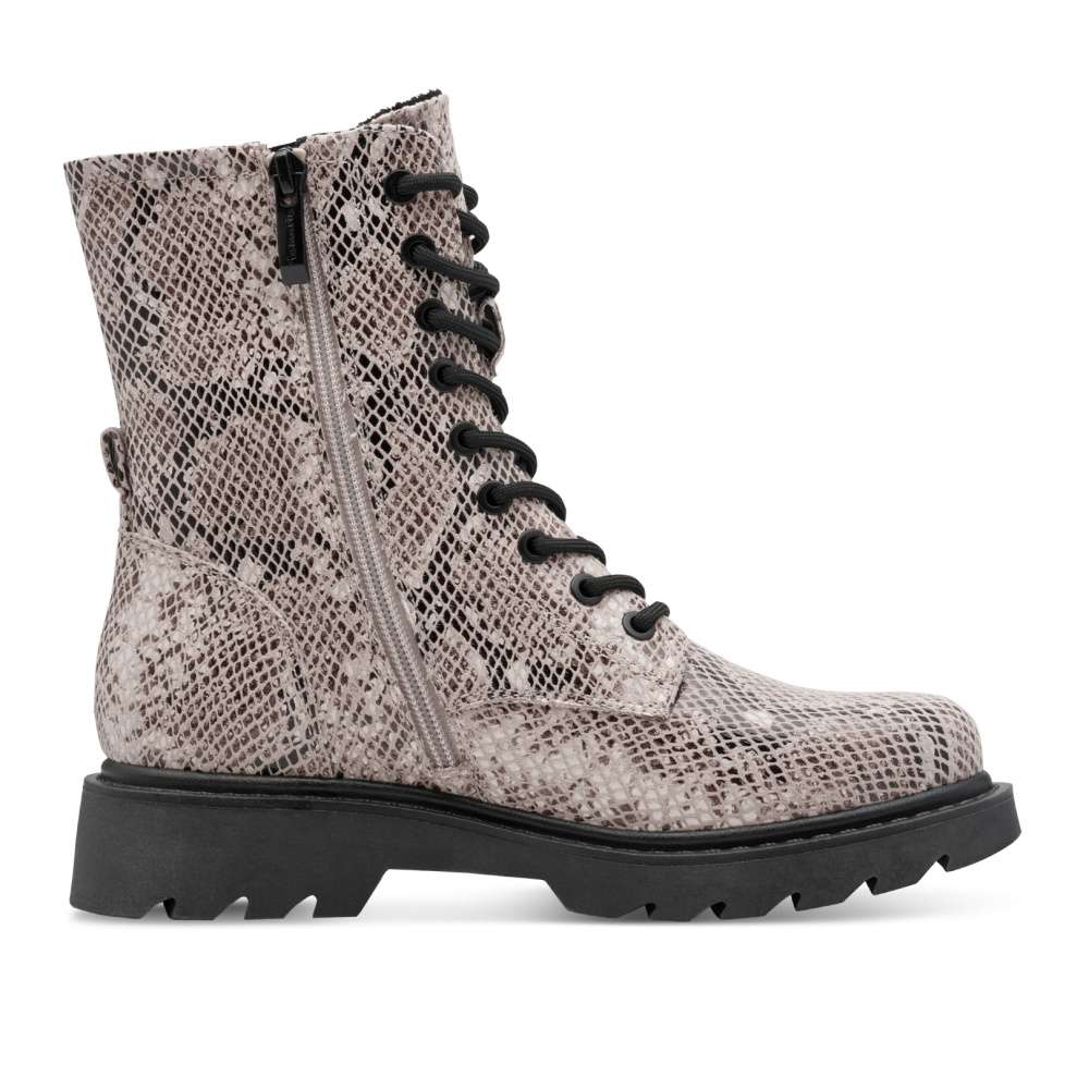 Detailní informace Tyto kotníkové boty Tamaris jsou skutečným klenotem mezi obuví. Na první pohled zaujmou úchvatným zvířecím vzorem, který jim dodává odvážný charakter. Pro maximální pohodlí při každodenním nošení jsou boty vybaveny praktickým bočním zipem, který zajišťuje rychlé a snadné obutí, a šněrováním, díky kterému si obuv upravíte přesně podle tvaru nohy. Stélka z měkkého materiálu poskytuje příjemný došlap a stabilní podešev se postará o jistotu na každém kroku. Kombinace originálního vzoru a nadčasového střihu dělá z tohoto modelu atraktivní kousek, který se skvěle hodí k celé řadě outfitů – od úzkých džínů a kožené bundy, přes sukni s kabátem, až po ležérnější městský styl s oversized svetry. Pokud hledáte obuv, která spojuje originalitu, pohodlí a kvalitu, tyto boty Tamaris budou tou správnou volbou.