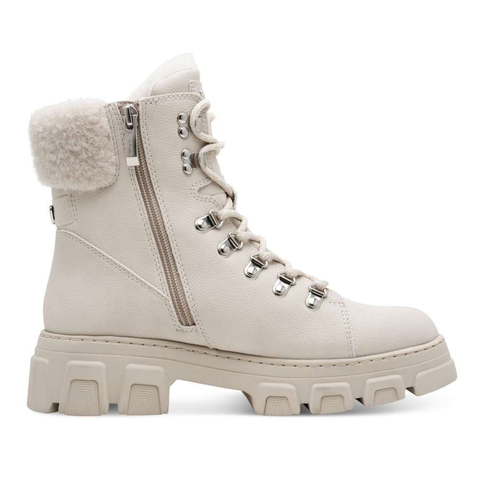 Detailní informace Stylové a pohodlné obutí do zimních dnů přináší tento model kotníkových bot Tamaris. Světlý svršek v moderním designu doplňuje textilní lem v horní části, který botám dodává hřejivý a ležérní vzhled. Kombinace praktického bočního zipu a klasického šněrování je nejen stylovým prvkem, ale i praktickým řešením – zip umožní rychlé a snadné obutí, zatímco šněrování pomáhá přizpůsobit botu přesně tvaru vašeho chodidla. Vnitřní část bot je zateplená hřejivým materiálem, který zaručuje komfort i během chladných zimních dnů. Vaše nohy zůstanou v teple i při dlouhých procházkách či každodenním nošení. Měkká vyjímatelná stélka se dokonale přizpůsobí tvaru chodidla a poskytne maximální pohodlí při každém kroku. Díky možnosti stélku vyjmout je péče o boty snadná. Podešev s výraznějším vzorem je nejen vizuálně atraktivní, ale především funkční – zajišťuje stabilitu při chůzi. Tyto kotníkové boty Tamaris jsou ideální volbou pro ženy, které hledají dokonalou rovnováhu mezi módním stylem a pohodlím. Ať už vyrážíte do práce, na nákupy nebo na procházku zimní krajinou, s tímto modelem budete vždy vypadat skvěle a cítit se naprosto komfortně.