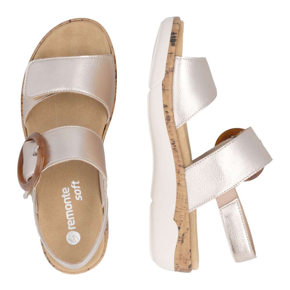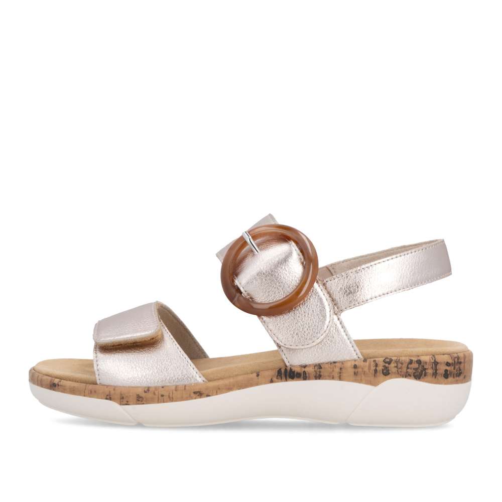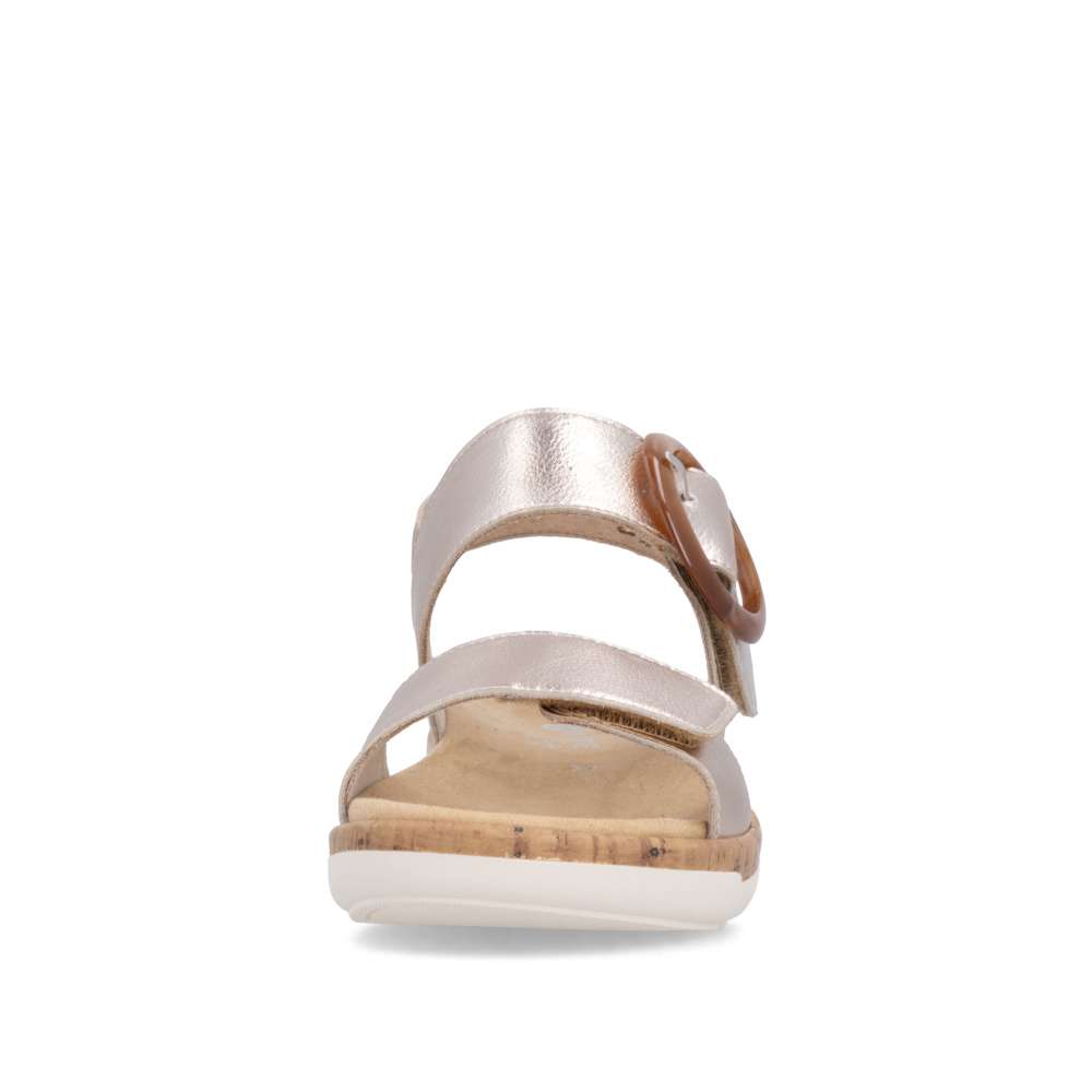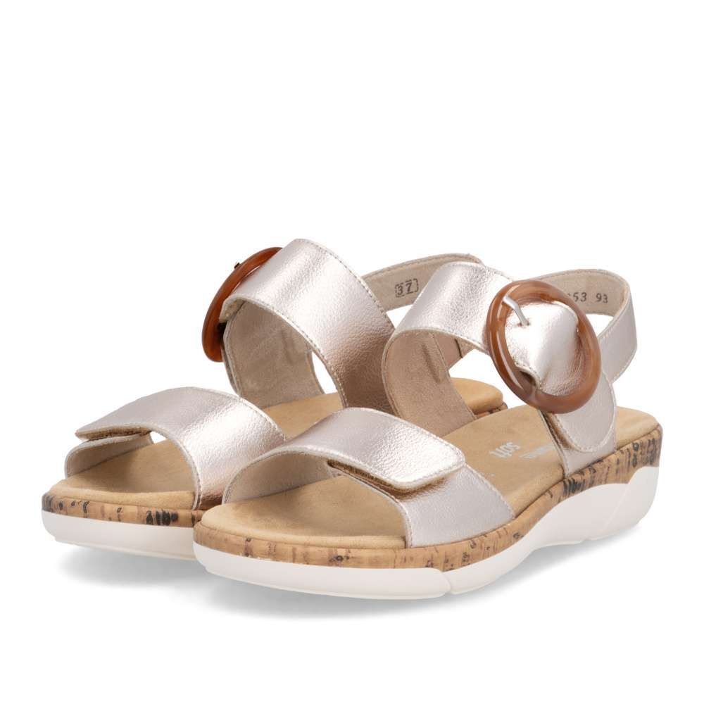 Detailní informace Obuv REMONTE představuje prémiovou řadu značky RIEKER, která se vyznačuje vysokou kvalitou použitých materiálů a precizním zpracováním. Oživte svůj letní šatník se sandály RIEKER, které vynikají jemnými odlesky materiálu svršku a výraznou ozdobnou aplikací u kotníku. Pásky těchto sandálů jsou elegantně uzavřeny suchým zipem, což zajišťuje nejen moderní vzhled, ale také praktické a pohodlné obouvání. Textilní vyjímatelná stélka širšího střihu vám poskytne pocit luxusu, zatímco vyšší podešev dodá sandálům eleganci a lehkost. S těmito sandály od RIEKER spojíte pohodlí s atraktivním designem pro bezstarostné léto plné šarmu.
