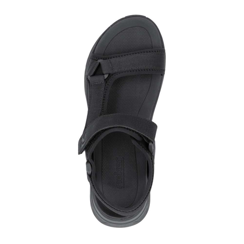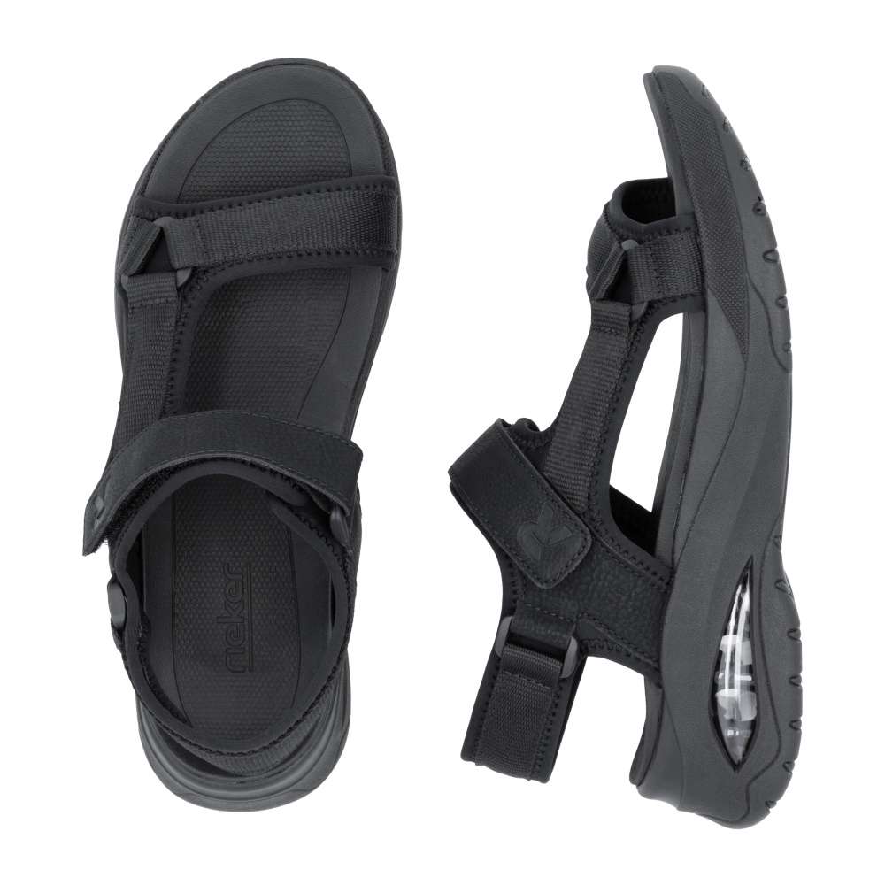 Užívejte si sportovní styl s botami značky RIEKER. Sportovní černé sandály RIEKER jsou opravdu nadčasovým kouskem, který by neměl chybět ve vašem šatníku, pokud hledáte obuv, která kombinuje pohodlí, funkčnost a styl. Tyto sandály se skvěle hodí pro každodenní nošení i pro různé venkovní aktivity, díky čemuž jsou univerzální a velmi praktické. Pásek přes nárt je nastavitelný a vybaven suchým zipem pro perfektní přizpůsobení noze a snadné nazutí. Vyšší podešev se vzduchovým prvkem v zadní části zajišťuje vynikající tlumení nárazů a komfort při chůzi. Pokud hledáte pohodlnou obuv na běžné dny, sandály RIEKER jsou jistě výbornou volbou. Dokonalá souhra moderního vzhledu a maximálního pohodlí díky funkčním technologiím to jsou boty RIEKER Sport. Technologie: Antistress – díky čtyřem antistresovým vlastnostem – lehkosti, pružnosti, prostornosti a vynikající absorpci nárazů – vám boty RIEKER nabídnou komfortnější chůzi. Vegan - pro zodpovědný životní styl bez živočišných materiálů.