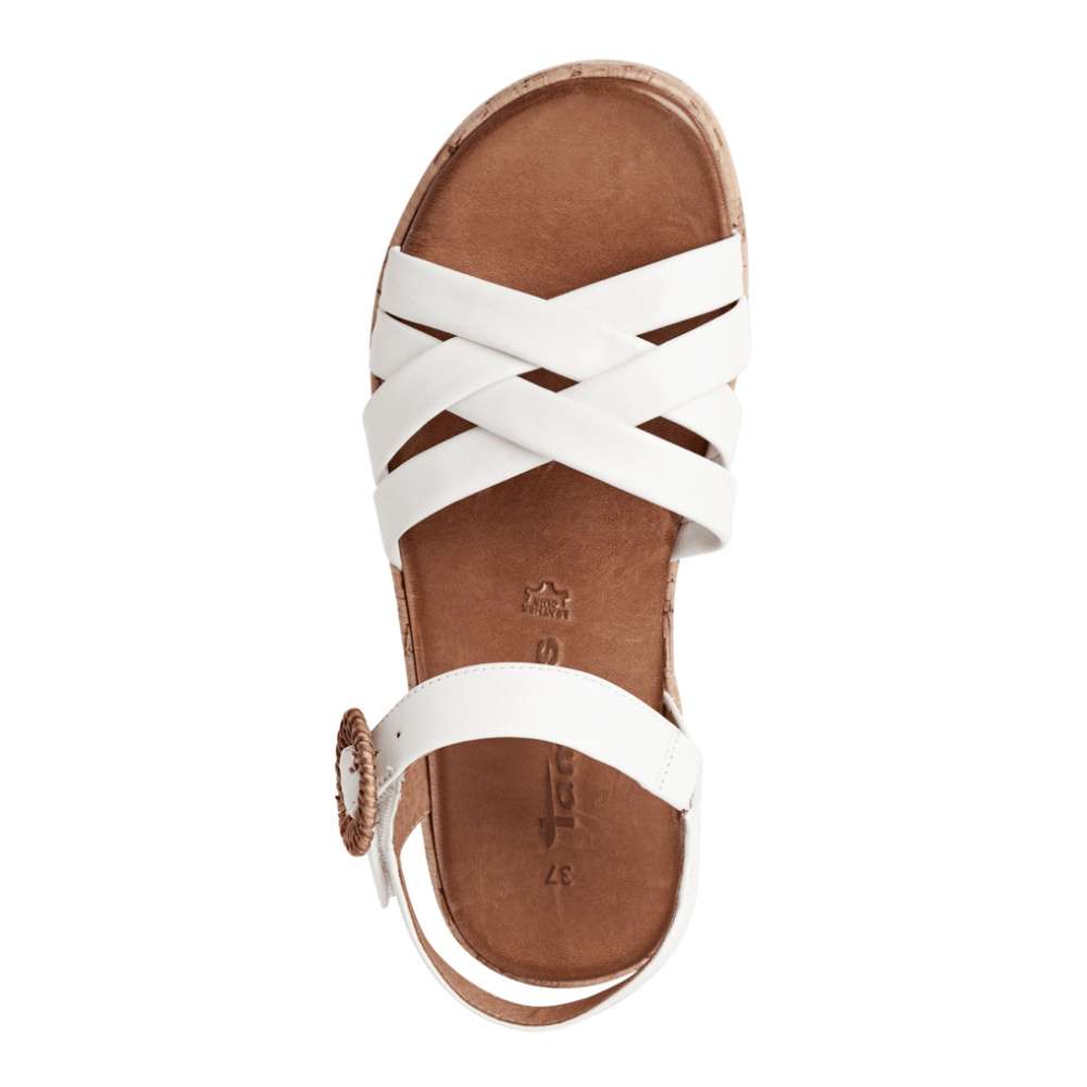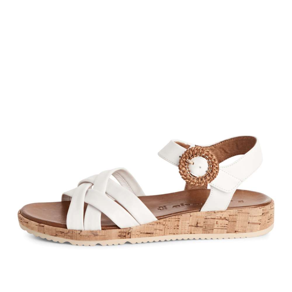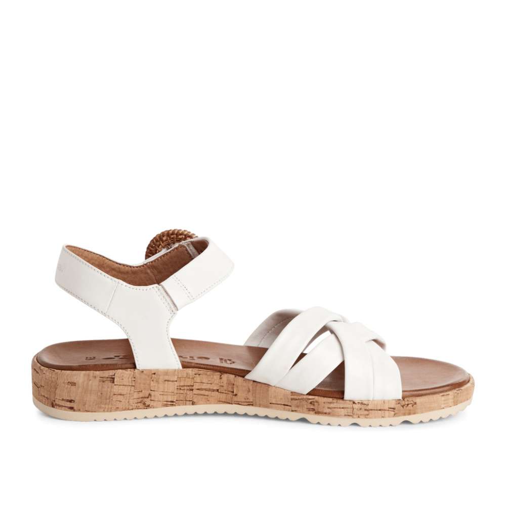 Sandály TAMARIS vám zajistí nadčasový vzhled a maximální pohodlí. Kožený bílý svršek s elegantně propletenými pásky působí stylově a jemně podtrhne váš letní outfit. Pásek kolem kotníku se suchým zipem umožňuje snadné obutí a zdobí ho poutavý detail. Podešev s korkovým vzhledem dodává botám jedinečný šmrnc, zatímco měkká kožená stélka s paměťovou pěnou zajistí dokonalý komfort po celý den.
