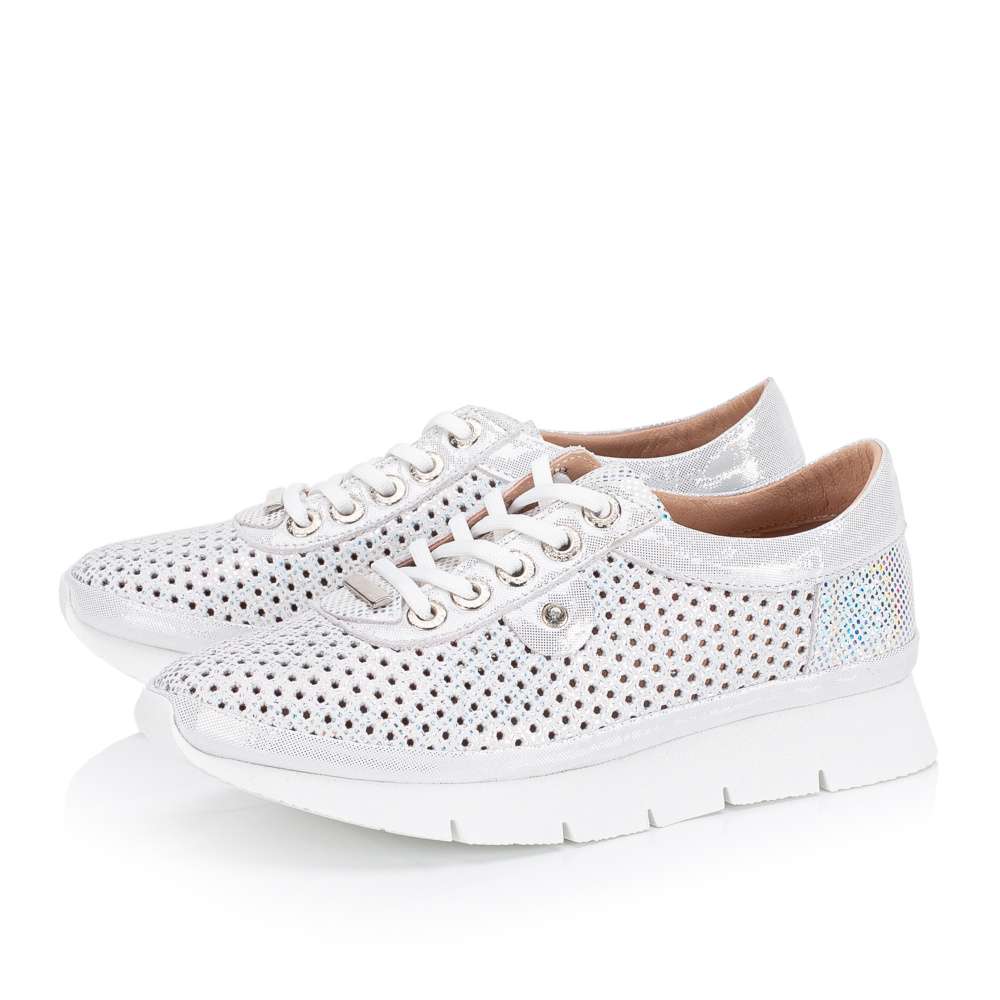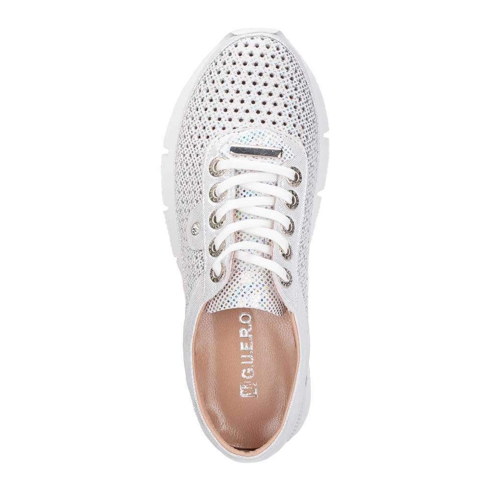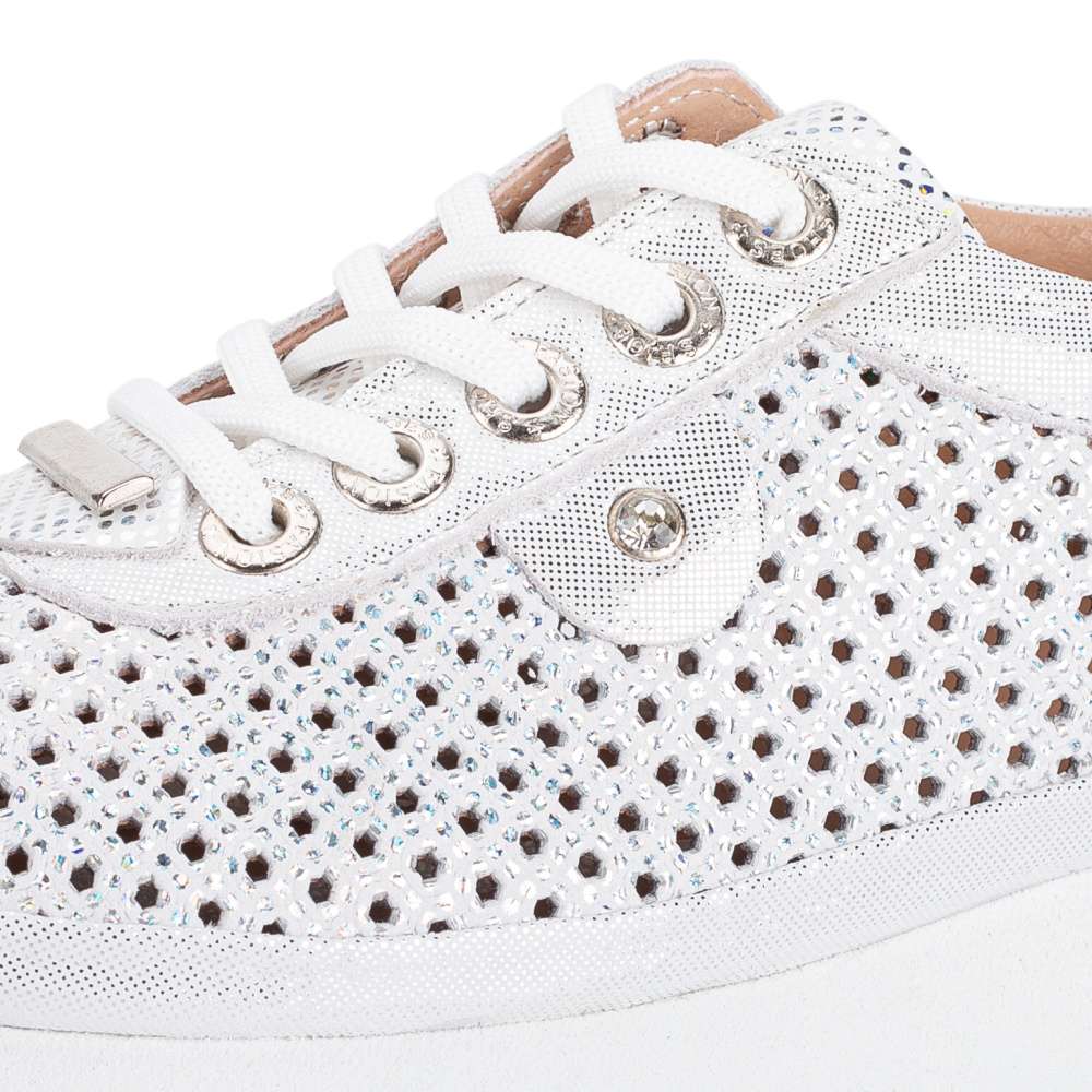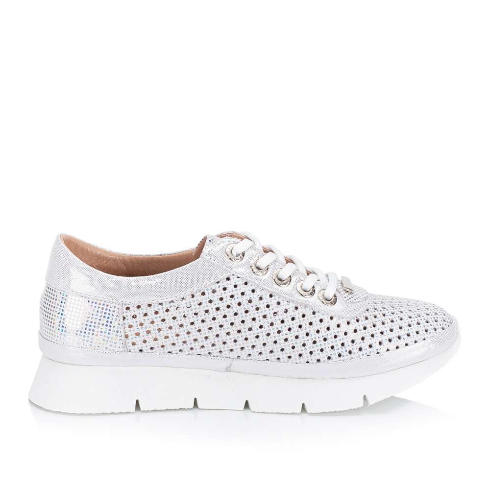 Rozjasněte své dny s těmito teniskami IBERIUS, které se pyšní nádhernými odlesky materiálu svršku a zdobnou perforací. Okouzlující vzhled je doplněný třpytivým kamínkem, který přidávají na eleganci. Kožený svršek i stélka poskytují maximální komfort při nošení, zatímco šněrování umožňuje snadné nazutí a dokonalé přizpůsobení tvaru chodidla. Stylový a zároveň pohodlný model, který podtrhne váš jedinečný vkus.