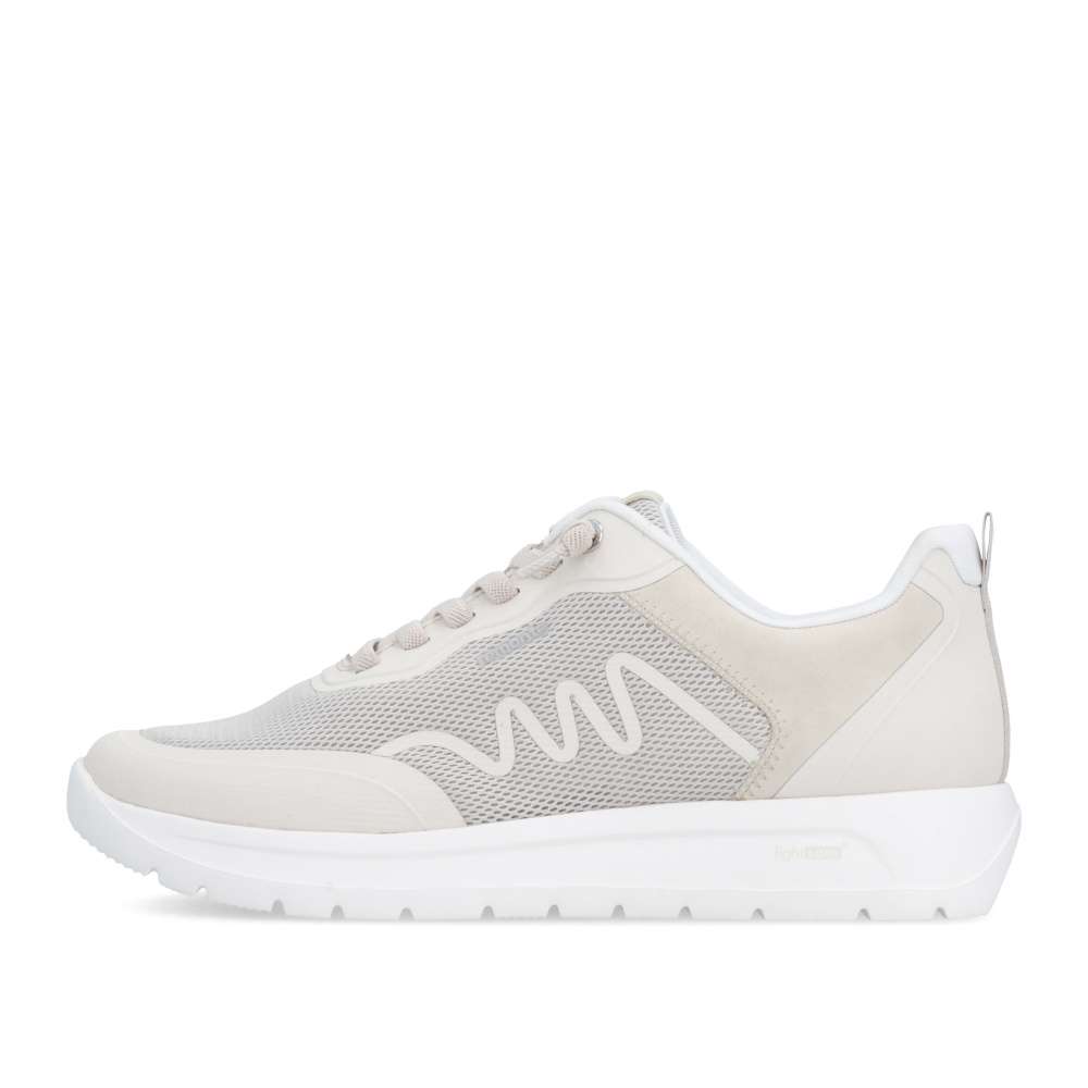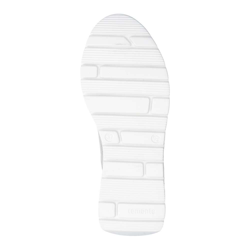 Obuv REMONTE představuje prémiovou řadu značky RIEKER, která se vyznačuje vysokou kvalitou použitých materiálů a precizním zpracováním. Tyto tenisky RIEKER přinášejí lehkost každého kroku díky promyšlené konstrukci a důrazu na komfort. Jejich světlé provedení zaujme na první pohled působivou kombinací materiálů, která dodává obuvi stylový vzhled a textilní materiál poskytne příjemnou cirkulaci vzduchu v teplých dnech. Působivé linie přecházející po svršku podtrhují dynamický charakter modelu, zatímco decentní logo značky dodává celkovému designu prémiový nádech. Namísto klasického šněrování je obuv vybavena pružnou gumičkou, která zajišťuje snadné obutí a dokonalé přizpůsobení noze bez potřeby neustálého vázání. Uvnitř se nachází vyjímatelná měkká stélka, která je příjemná na došlap a zajišťuje optimální komfort během celého dne. Výhodou je i její snadná údržba či případná výměna za ortopedickou vložku. Širší střih bot zajišťuje dostatek prostoru i pro ženy se širším chodidlem nebo ty, kteří potřebují pohodlí navíc. Podešev poskytuje potřebnou oporu a stabilitu při každém kroku, díky čemuž jsou tyto tenisky skvělou volbou pro městské procházky, volnočasové aktivity i celodenní nošení. Tyto tenisky jsou ideální kombinací stylu, praktických prvků a pohodlí – perfektní doplněk pro ženy, které chtějí vypadat moderně a zároveň se cítit skvěle po celý den. Technologie: Remonte Soft – unikátní stélka vyrobená z prodyšného materiálu, která svým tvarem a materiálem zajistí pocit pohodlí při celodenním nošení. Lite'n Soft - maximální komfort při nošení vytváří kombinace lehké podešve, velmi příjemných materiálů a komfortní stélky. Tato bota je vybavena vyjímatelnou stélkou. EXTRA WIDE – boty jsou širšího střihu, tvar boty je přizpůsoben chodidlu pro vytvoření dostatečného prostoru v oblasti přední části chodidla.