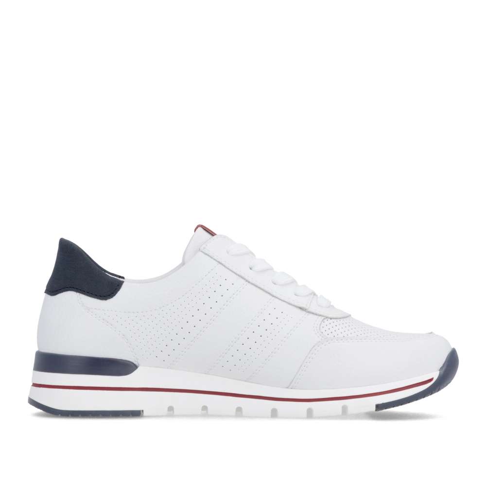 Obuv REMONTE představuje prémiovou řadu značky RIEKER, která se vyznačuje vysokou kvalitou použitých materiálů a precizním zpracováním. Tento kožený model je ideální pro ženy, které chtějí být stylové a aktivní, a zároveň nehodlají dělat kompromisy v oblasti pohodlí. Jejich bílý svršek je dekorován perforovaným vzorem a barevně kontrastními detaily, které dodávají obuvi atraktivní vzhled. Logo značky podtrhuje prémiový charakter modelu a dodává mu autentickou identitu. Praktické šněrování spolu se zipem na nártu umožňuje snadné nazutí a přesné přizpůsobení boty tvaru nohy. Vyjímatelná měkká stélka zajišťuje pohodlí po celý den a umožňuje snadnou údržbu nebo výměnu za individuálně zvolenou stélku dle potřeby. Vyšší podešev nejen dodává teniskám charakteristický vzhled, ale také poskytuje stabilitu. Tenisky jsou navrženy s důrazem na komfort při každodenním nošení, ať už jde o procházky městem, cesty do práce, volnočasové aktivity nebo setkání s přáteli. Tyto tenisky RIEKER budou spolehlivým partnerem pro aktivní životní styl, který dodá vašemu outfitu nejen vizuální přitažlivost, ale také pocit komfortu a sebevědomí. Technologie: Remonte Soft – unikátní stélka vyrobená z prodyšného materiálu, která svým tvarem a materiálem zajistí pocit pohodlí při celodenním nošení. Tato bota je vybavena vyjímatelnou stélkou.