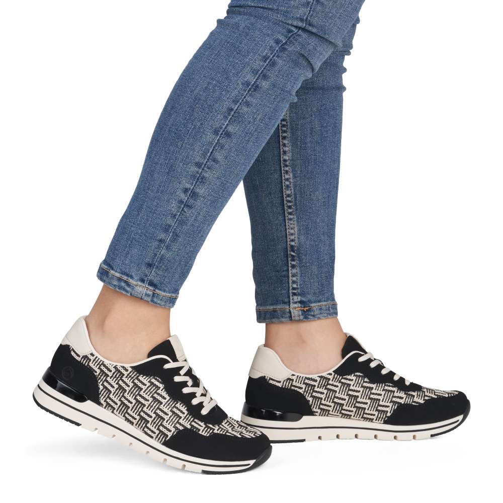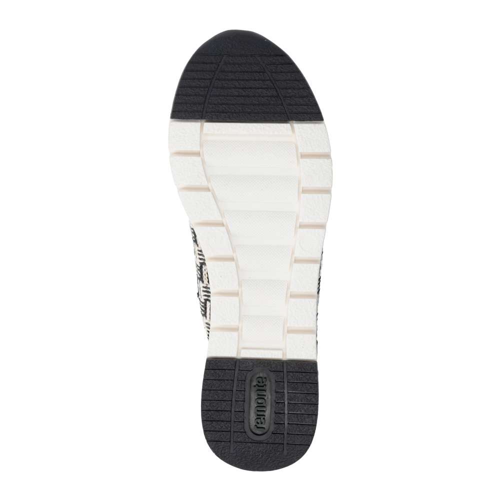 Obuv REMONTE představuje prémiovou řadu značky RIEKER, která se vyznačuje vysokou kvalitou použitých materiálů a precizním zpracováním. Vizuálně atraktivní kombinace různých struktur materiálů vytváří dynamický vzhled tenisek, který dodá každému outfitu nádech originality. Každý detail je pečlivě navržen tak, aby zdůraznil ženskost a vkus moderní nositelky. Šněrování v kombinaci s praktickým zipem na nártu zajišťuje nejen jednoduché a rychlé obouvání, ale také precizní přizpůsobení boty tvaru chodidla. Měkká, vyjímatelná stélka poskytuje výjimečný komfort při každém kroku a vytváří pocit lehkosti i během celodenního nošení. Tyto tenisky jsou ideálním doplňkem pro ženy, které očekávají od obuvi víc než jen funkčnost – nabízejí styl, pohodlí a luxusní vzhled v jednom. Skvěle doplní městský ležérní outfit a stanou se nepřehlédnutelným prvkem vašeho každodenního šatníku. Technologie: Remonte Soft – unikátní stélka vyrobená z prodyšného materiálu, která svým tvarem a materiálem zajistí pocit pohodlí při celodenním nošení. Tato bota je vybavena vyjímatelnou stélkou.