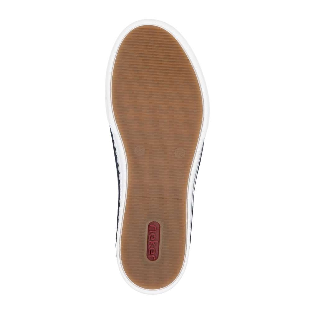Tyto tenisky RIEKER obohatí Váš šatník o univerzální a kvalitní kousek, který Vás nikdy nezklame. Tmavě modrý svršek je dekorován logem značky a kontrastním prvkem bílé barvy v části paty. K obutí Vám poslouží šňůrky, kterými si boty můžete utáhnout podle Vašich představ tak, aby Vám dokonale seděly. O vaše pohodlí se postará měkká vyjímatelná stélka a podešev tlumící nárazy. Tyto tenisky jsou ideální volbou pro běžné pochůzky městem i do práce k ležérnímu oblečení. Technologie: Antistress – díky čtyřem antistresovým vlastnostem – lehkosti, pružnosti, prostornosti a vynikající absorpci nárazů – vám boty RIEKER nabídnou komfortnější chůzi. Rieker Soft – unikátní stélka vyrobená z prodyšného materiálu, která svým tvarem a materiálem zajistí pocit pohodlí při celodenním nošení. Tato bota je vybavena vyjímatelnou stélkou.