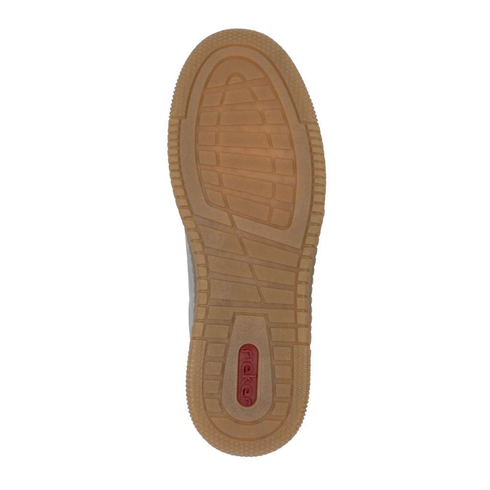 Užívejte si sportovní styl s botami značky RIEKER. Jedinečný vzhled tenisek RIEKER se pyšní nádhernou dekorací na boční straně a výrazným logem značky na patní části, což jim dodává moderní vzhled. Šněrování umožňuje ideální přizpůsobení obuvi, zatímco tvarovaná, příjemně měkká a vyjímatelná stélka poskytuje komfort po celý den. Podešev, která tlumí nárazy při chůzi, zajišťuje vynikající pohodlí a podporu pro vaše nohy. Tyto tenisky jsou skvělou volbou pro každodenní nošení, kombinující styl a komfort. Dokonalá souhra moderního vzhledu a maximálního pohodlí díky funkčním technologiím to jsou boty RIEKER Sport. Technologie: Antistress – díky čtyřem antistresovým vlastnostem – lehkosti, pružnosti, prostornosti a vynikající absorpci nárazů – vám boty RIEKER nabídnou komfortnější chůzi. VEGAN – pro zodpovědný životní styl bez živočišných materiálů. Rieker Soft – unikátní stélka vyrobená z prodyšného materiálu, která svým tvarem a materiálem zajistí pocit pohodlí při celodenním nošení. Tato bota je vybavena vyjímatelnou stélkou.