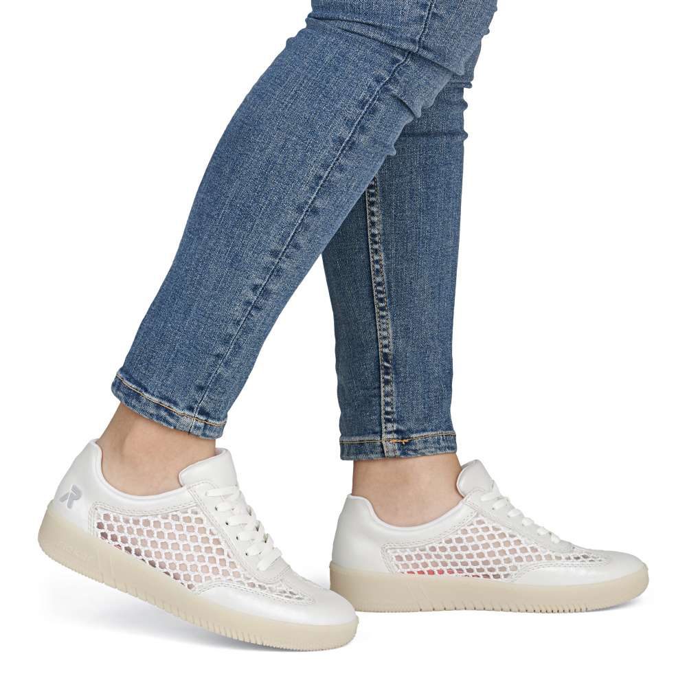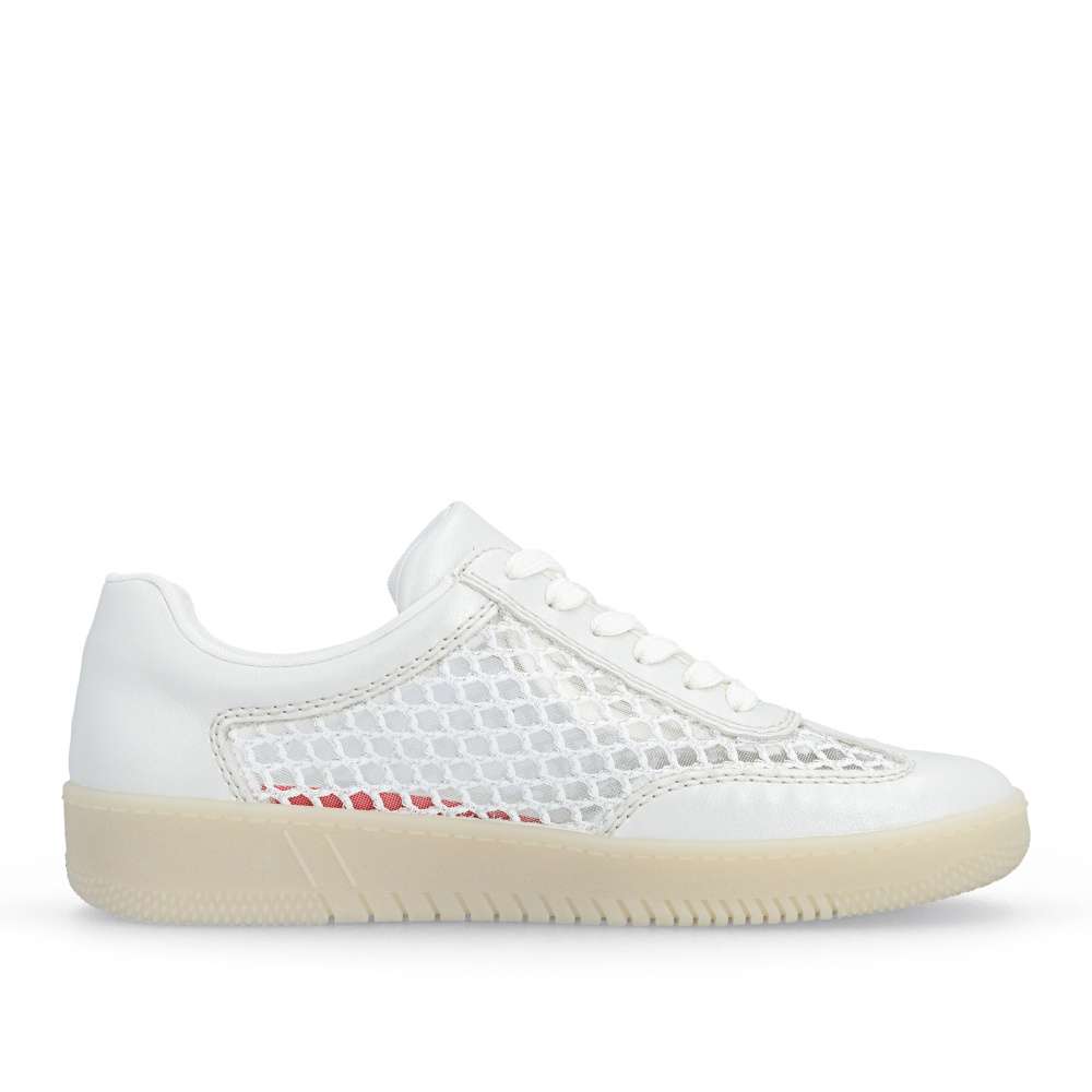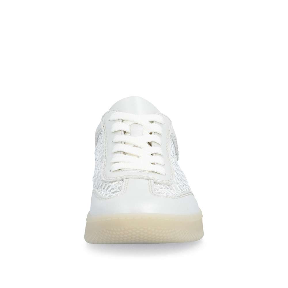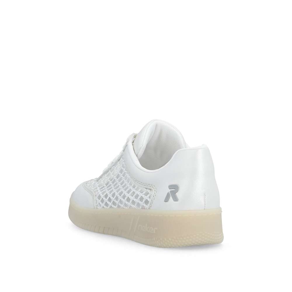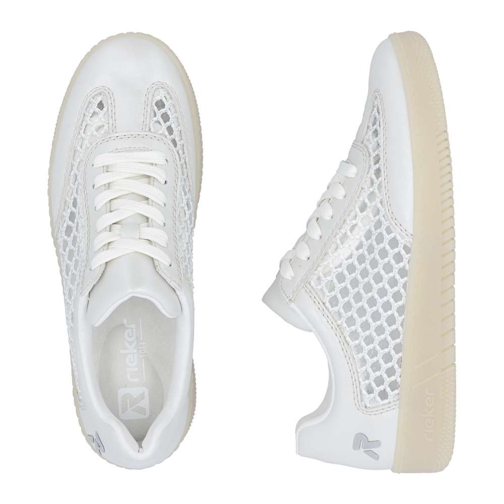 Detailní informace Stylová dámská teniska RIEKER nabízí moderní prodyšný design díky síťovaným bočním panelům a světlému třpytivému svršku. Obuv je vybavena vyjímatelnou soft stélkou, která poskytuje měkký došlap a možnost individuální úpravy podle vašich potřeb zajistí šněrování. Lehká a flexibilní podešev zajišťuje pohodlný krok po celý den a tím je tato obuv skvělou volbou pro každodenní nošení i volný čas.