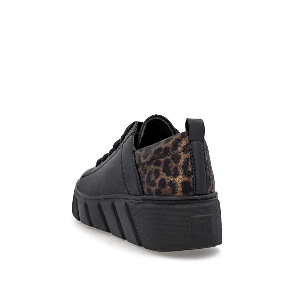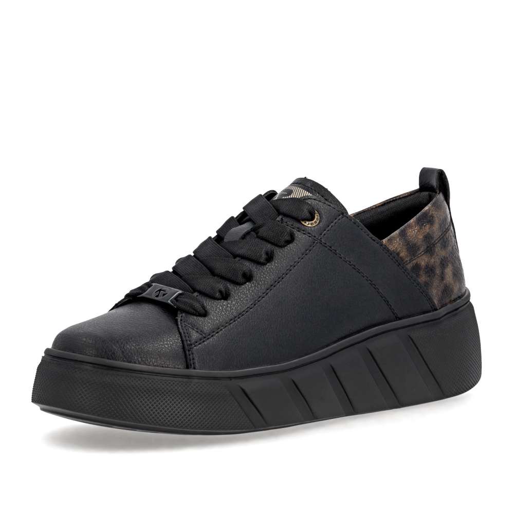 Detailní informace Užívejte si sportovní styl s botami značky RIEKER. Tyto černé tenisky jsou ztělesněním stylového vzhledu s výraznou dekorací zádě v designu zvířecího vzoru. Robustní podešev nejen vizuálně dominuje, ale zároveň efektivně tlumí nárazy při chůzi. Šněrování zajišťuje pevné uchycení boty na noze, zatímco vyjímatelná měkká stélka přidává extra pohodlí. Tento model je ideální volbou pro každodenní nošení pro ženy preferující pohodlnou obuv s osobitým designem. Dokonalá souhra moderního vzhledu a maximálního pohodlí díky funkčním technologiím to jsou boty RIEKER Sport.