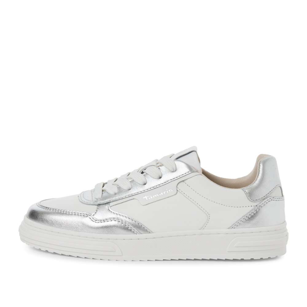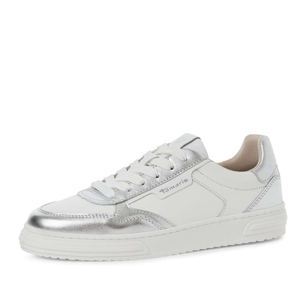 Detailní informace Mladistvé tenisky značky Tamaris jsou perfektní volbou pro ženy, které chtějí být v trendu. Kombinace bílé kůže a stříbrných odlesků přidává těmto teniskám oslnivý vzhled, který okamžitě upoutá pozornost. Šněrování zajišťuje optimální uchycení na noze a vyjímatelná stélka přispívá k celodennímu pohodlí. Tyto tenisky se snadno kombinují s různými outfity a jsou ideální pro každodenní nošení, ať už do města nebo na volný čas.