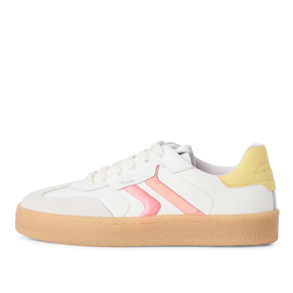 Detailní informace Mladistvé tenisky Tamaris přinášejí svěží styl díky bílému svršku doplněnému barevnými liniemi, nápaditý vzhled těchto tenisek dokonale doplní Váš jedinečný styl. Optimální pohodlí při nošení zajistí šněrování a měkká vyjímatelná stélka. Tento model bude vynikající volbou pro ženy, které hledají pohodlnou a stylovou obuv na každý den.