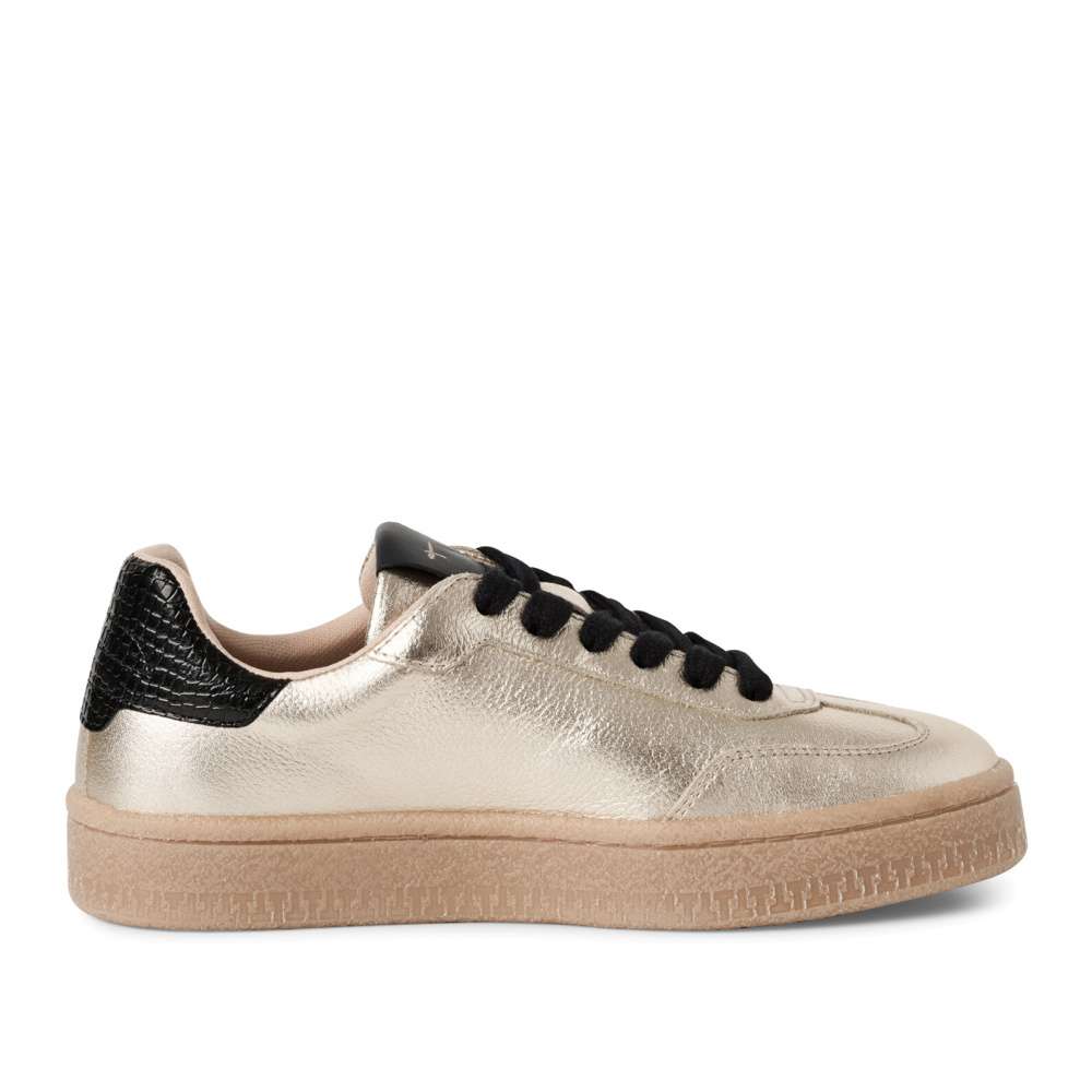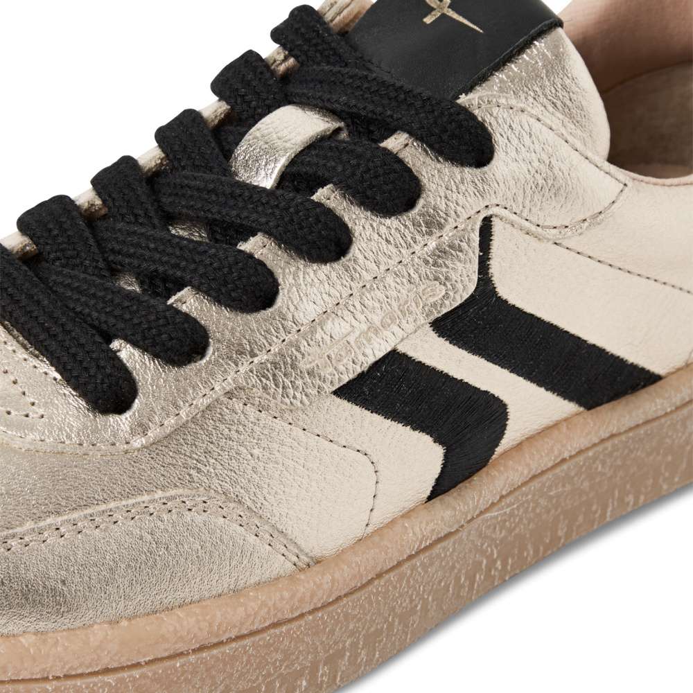 Detailní informace Značka Tamaris přináší tento stylový kousek, který zvýrazní vaši originalitu a dodá vašim krokům sebevědomý a moderní nádech. Okouzlující zlaté odlesky materiálu svršku dekorují černé aplikace, které zvýrazní originalitu tohoto modelu. Praktické šněrování zajistí optimální přizpůsobení individuálním potřebám každé z Vás, vyšší stabilní podešev podpoří jistý krok a měkká vyjímatelná stélka se dokonale přizpůsobí tvaru chodidla. Tyto tenisky spojují moderní vzhled s maximálním pohodlím, díky čemuž jsou ideální volbou pro každý den, kdy chcete vypadat stylově a zároveň se cítit pohodlně.
