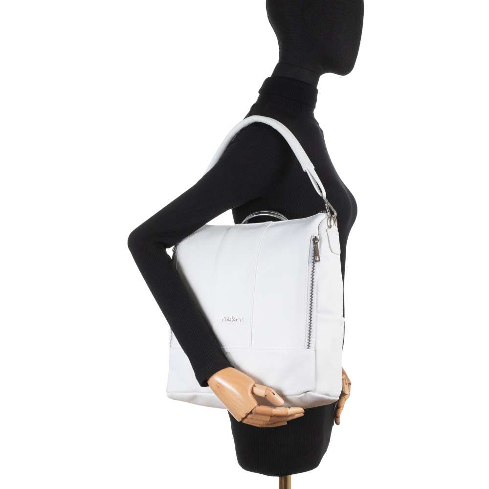 Detailní informace Tento batoh značky RIEKER zaujme svými čistými liniemi a zářivě bílým svrškem, který působí svěže a moderně. Elegantní stříbrné akcenty dodávají celkovému vzhledu sofistikovaný nádech a originalitu vystihuje logo značky. Minimalistický design je ideální pro ženy, které milují jednoduchost s dotekem luxusu. Přední část batohu je vybavena dvěma menšími kapsami uzavřenými zipem, které nabízí praktické úložné prostory pro vaše drobnosti a kapsičky jsou i po stranách batohu. Zadní část batohu je vybavena další kapsou se zipem, kde můžete uložit své cennosti. Hlavní oddíl batohu, uzavřený vrchním zipem, nabízí dostatek místa pro uložení vašich věcí pro každodenní použití. Uvnitř naleznete další dvě menší kapsy pro jednoduchou organizaci. Pro pohodlné nošení máte možnost využít kratší popruh nebo dva nastavitelné popruhy, které lze pohodlně přizpůsobit vašim preferencím. Oba popruhy jsou navíc odepínatelné, což vám umožní měnit způsob nošení podle situace. Tento batoh je ideální volbou pro ženy, které chtějí spojit stylový vzhled s praktickým využitím v každodenním životě.