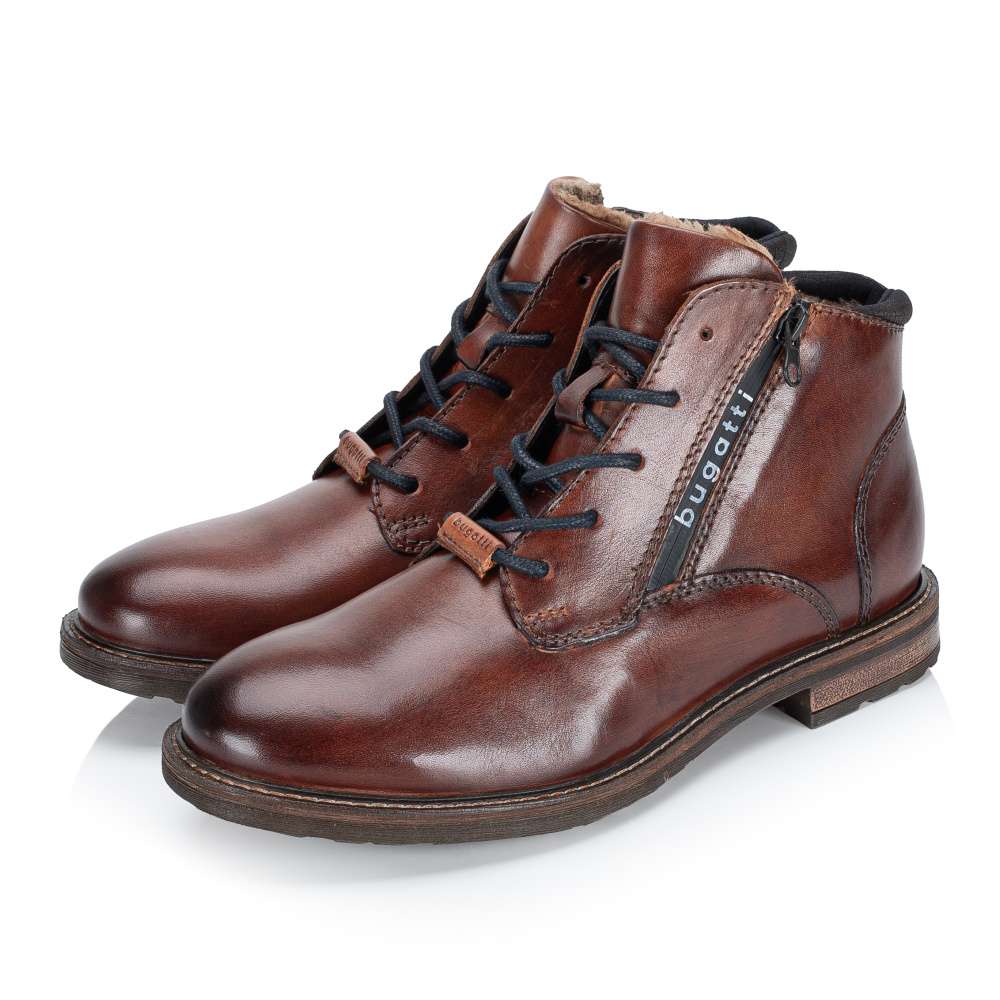 Tyto kotníky v módním stylu značky Bugatti jsou dokonalým příkladem toho, jak může precizní zpracování a kvalitní materiály vytvořit nadčasový kousek. Kožený svršek hnědé barvy působí univerzálně, takže se skvěle kombinuje jak s volnočasovým, tak i s formálnějším outfitem. Logo značky dodává botám na atraktivitě a podtrhuje jejich originální design svým umístěním na zipu v části nártu. Praktické šněrování zajistí, že obuv perfektně padne na každou nohu a zip urychlí nazutí, kdy vkročíte do hřejivého textilního zateplení. Flexibilní podešev s moderním vzhledem se postará o pohodlí a jistotu při každém kroku a určitě oceníte i širší střih bot pro vytvoření dostatečného prostoru chodidlu. Tyto boty spojují módní vzhled, komfort a kvalitu, kterou oceníte při každodenním nošení i speciálních příležitostech. Technologie: Comfort Wide – tvar boty je přizpůsobený chodidlu pro vytvoření dostatečného prostoru v oblasti přední části chodidla. Genial insole basic – stélka, která je navržena pro měkkou a pohodlnou chůzi a optimální tlumení nárazů při chůzi. Soft Flex - definuje pohodlí prostřednictvím výjimečné měkkosti a pružnosti podešve pro přirozenou svobodu pohybu.