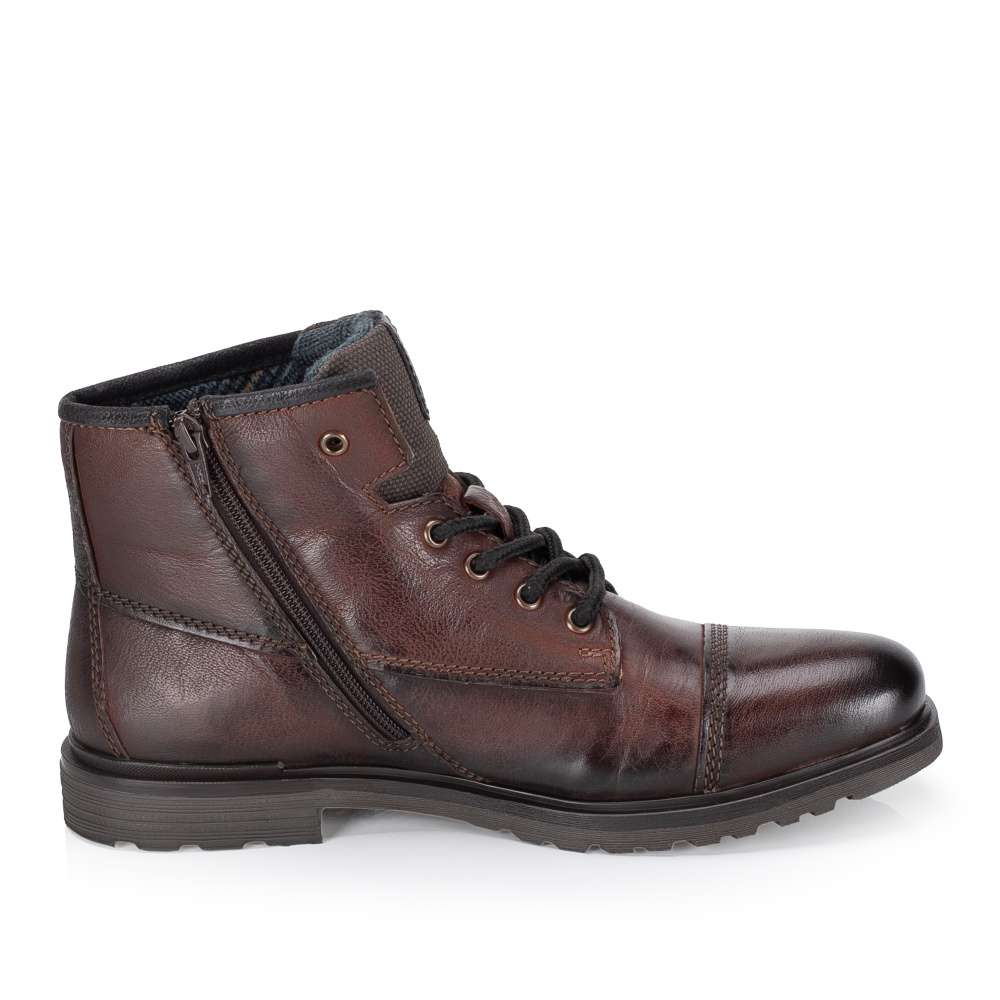 Detailní informace Kotníkové boty BUGATTI jsou ukázkou toho, jak lze dokonale propojit působivý design s prvotřídním pohodlím. Hned na první pohled zaujmou svým precizně zpracovaným koženým svrškem, který je ozdoben jemnými liniemi prošívání a logem značky. Tyto detaily dodávají obuvi nadčasový a stylový charakter, který ocení každý muž s citem pro módu. Velkou předností tohoto modelu je kombinace šněrování a praktického bočního zipu – ten zaručí snadné a rychlé obutí, aniž by bylo nutné pokaždé rozvazovat tkaničky. Díky tomu se boty dokonale přizpůsobí vašim potřebám a stanou se spolehlivým společníkem jak při pracovních povinnostech, tak i během volného času. Interiér obuvi je navržen s důrazem na komfort, příjemná textilní podšívka spolu s měkkou stélkou se postarají o pohodlí při každém kroku. Stabilní podešev se nejen podílí na atraktivním vzhledu bot, ale zároveň zajišťuje jistotu a spolehlivou oporu na různých typech povrchů. BUGATTI opět potvrzuje, že je značkou, která si zakládá na kvalitě, funkčnosti i moderním designu.