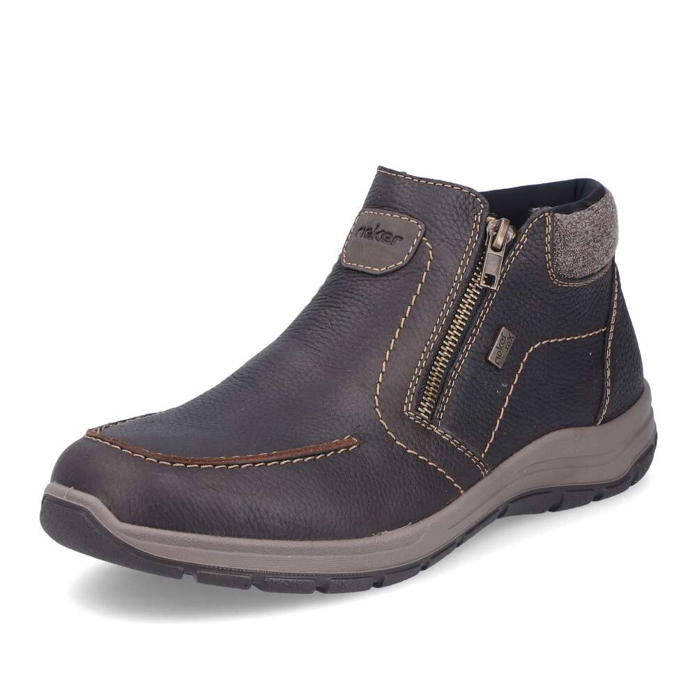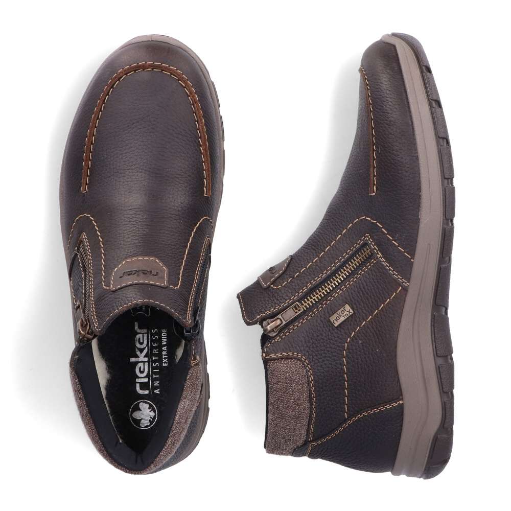 Tyto pánské boty RIEKER jsou opravdu dokonalým kouskem díky jejich nadčasovému designu a praktickým vlastnostem. Hnědý kožený svršek je obohacen nepromokavou membránou pro pocit sucha v každém počasí a zateplení ovčí vlnou poskytne potřebné teplo v chladných dnech. Měkká stélka zajistí pohodlný pocit při chůzi, tlumící podešev podtrhne celkový design a sníží otřesy každým krokem. Obutí je snadné díky dvěma zipům umístěným po bočních stranách nártu. Tyto boty jsou skvělou volbou pro každého, kdo hledá kombinaci stylu, pohodlí a funkčnosti ve své obuvi. Technologie: Antistress – díky čtyřem antistresovým vlastnostem – lehkosti, pružnosti, prostornosti a vynikající absorpci nárazů – vám boty RIEKER nabídnou komfortnější chůzi. Rieker TEX – funkční vrstva, díky které je bota nepromokavá a přesto prodyšná. Podšívka je vyrobena z pravé ovčí vlny. Tato bota je vybavena vyjímatelnou stélkou. EXTRA WIDE – boty jsou širšího střihu, tvar boty je přizpůsoben chodidlu pro vytvoření dostatečného prostoru v oblasti přední části chodidla.