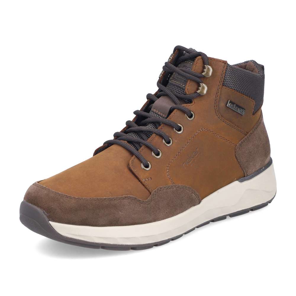 Spolehlivý partner na zimu – tyto pánské kotníkové boty RIEKER jsou ideální do sychravého a chladného počasí. Díky kombinaci kvalitních materiálů a nepromokavé membrány ochrání vaše nohy před vlhkostí i sněhem. Pohodlné obouvání zajišťuje kombinace šněrování a bočního zipu, zatímco vnitřní podšívka z ovčí vlny poskytne příjemné teplo i během mrazivých dnů. Praktickým prvkem je vyjímatelná stélka, která umožní snadnou údržbu nebo výměnu za Vámi preferovanou stélku. Technologie tlumení nárazů v podešvi se postará o pohodlí během celého dne a nemusíte mít obavu z nepohodlí při delším nošení. Moderní vzhled s praktickými prvky činí z tohoto modelu značky RIEKER ideální zimní obuv. Technologie: Antistress – díky čtyřem antistresovým vlastnostem – lehkosti, pružnosti, prostornosti a vynikající absorpci nárazů – vám boty RIEKER nabídnou komfortnější chůzi. Rieker TEX – funkční vrstva, díky které je bota nepromokavá a přesto prodyšná. Podšívka je vyrobena z pravé ovčí vlny. EXTRA WIDE – boty jsou širšího střihu, tvar boty je přizpůsoben chodidlu pro vytvoření dostatečného prostoru v oblasti přední části chodidla. Tato bota je vybavena vyjímatelnou stélkou.