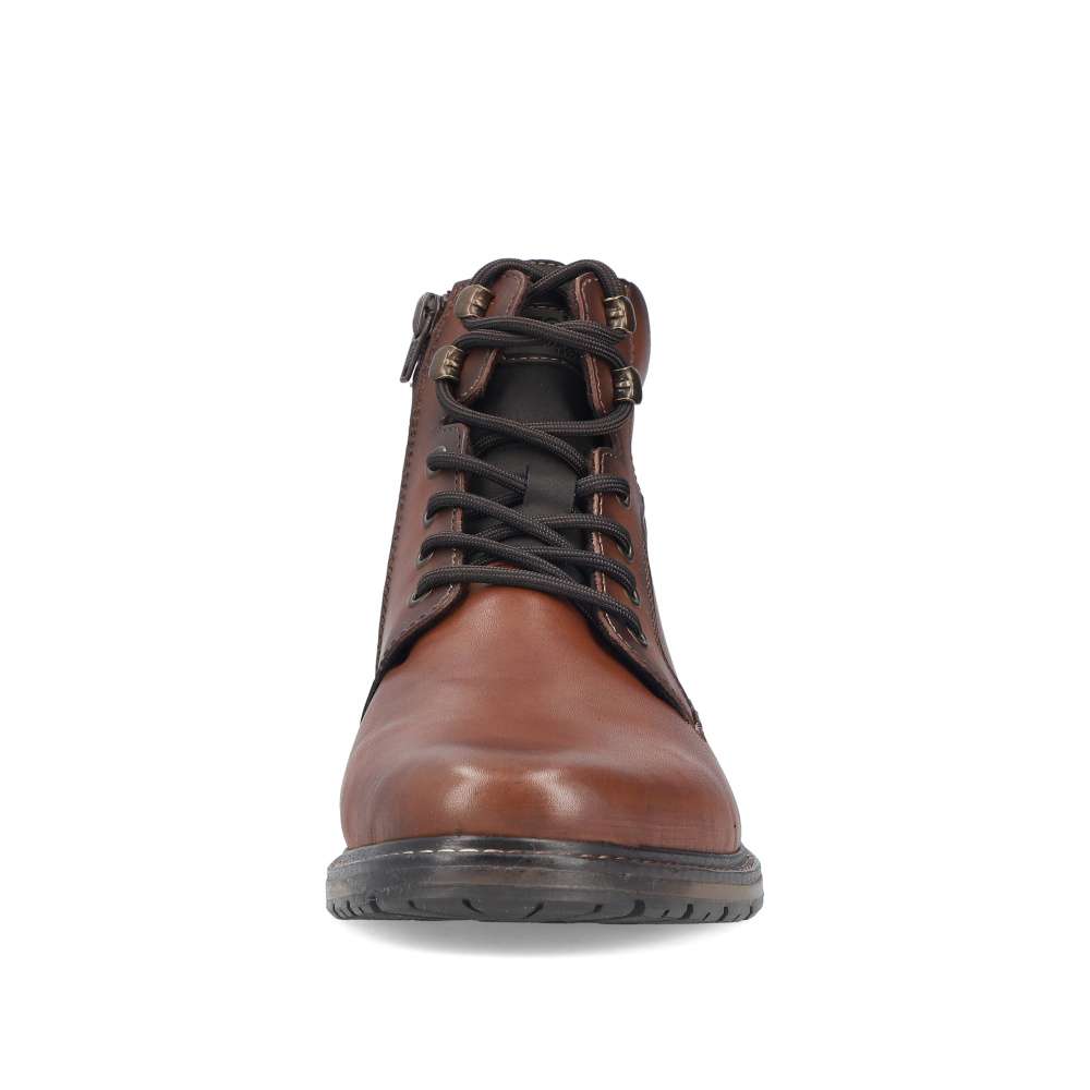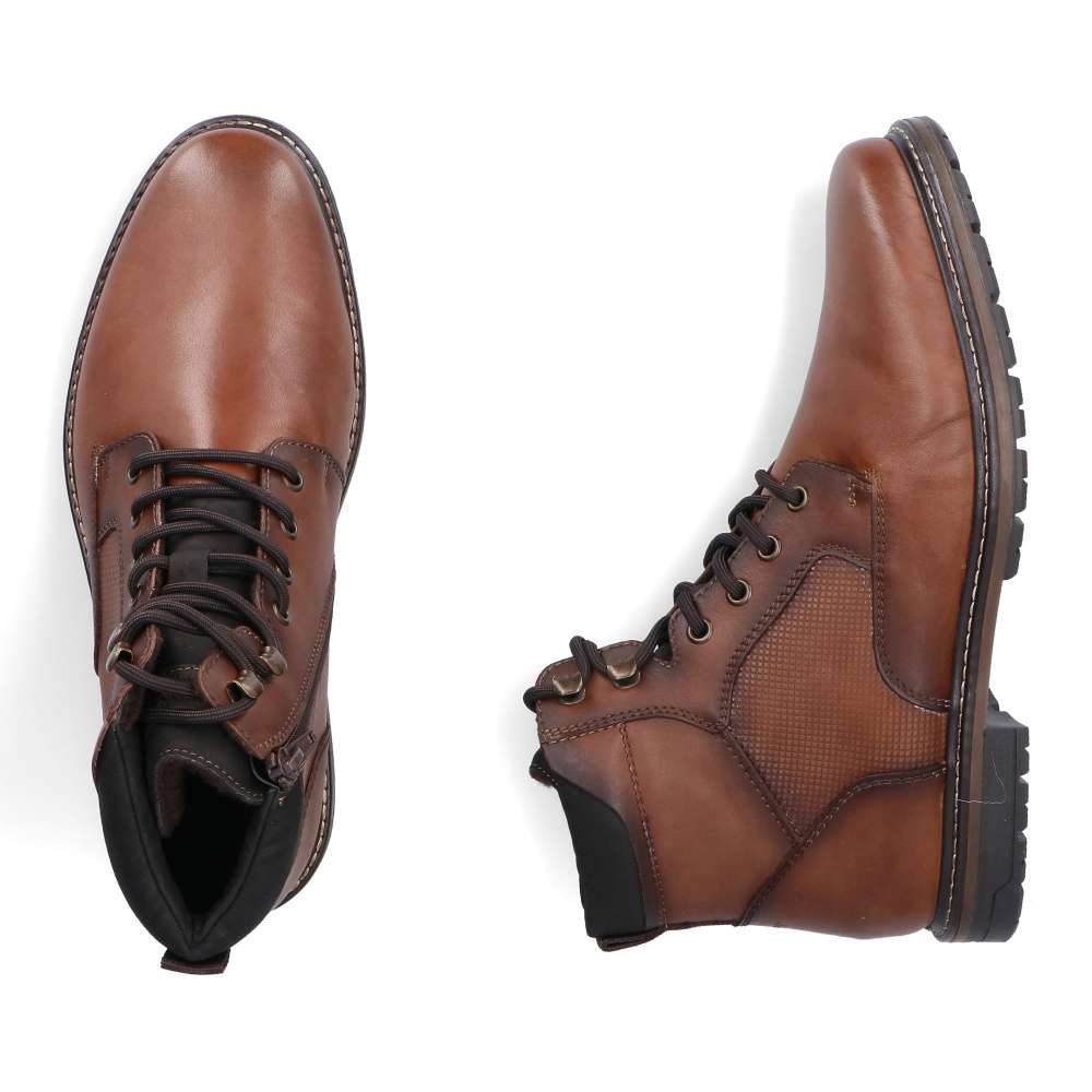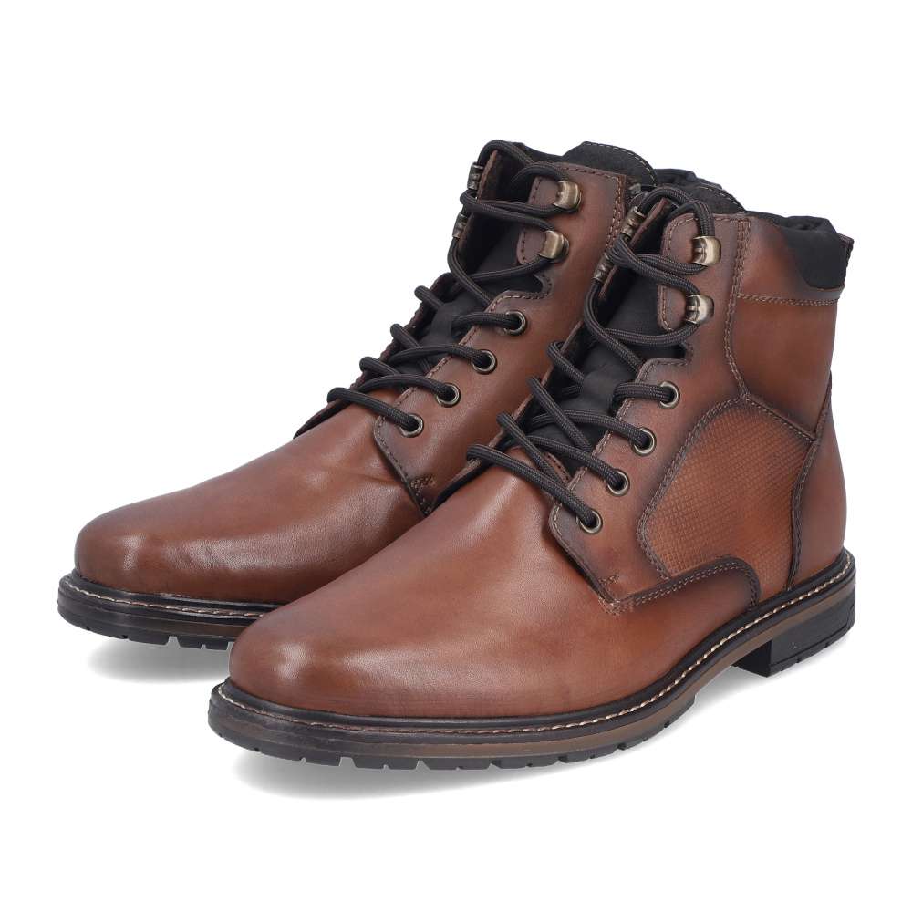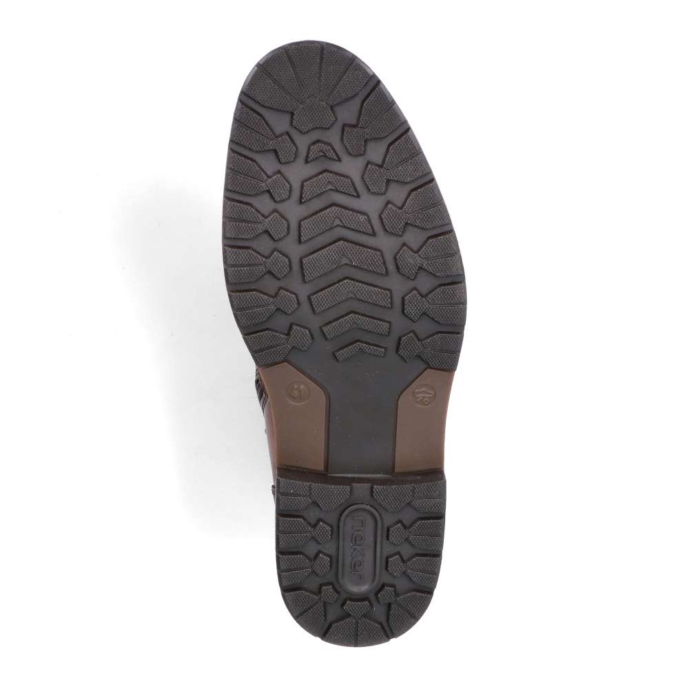 Detailní informace Stylový vzhled těchto bot značky RIEKER je doplněn praktickými detaily, které zaručí pohodlné nošení během celého dne. Hnědý svršek zdobí jemné linie prošití, které vytváří nadčasový design v moderním provedení. Kombinace klasického šněrování a zipu z vnitřní strany umožňuje snadné obouvání. Příjemným prvkem je kožená stélka a textilní podšívka poskytující příjemný komfort každým nášlapům, zatímco podešev s tlumením nárazů se postará o pohodlí i při delší chůzi. Tyto boty značky RIEKER nabízí vyvážený mix stylu a komfortu pro každodenní nošení.