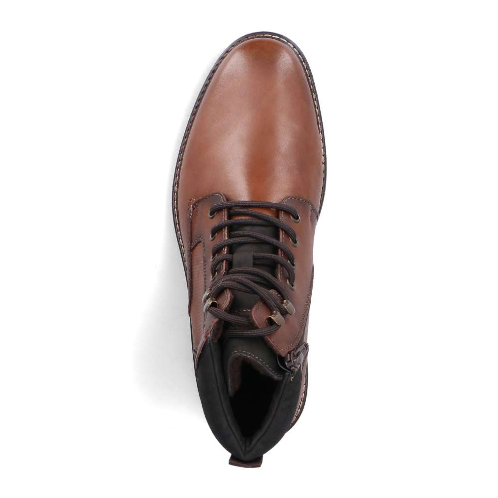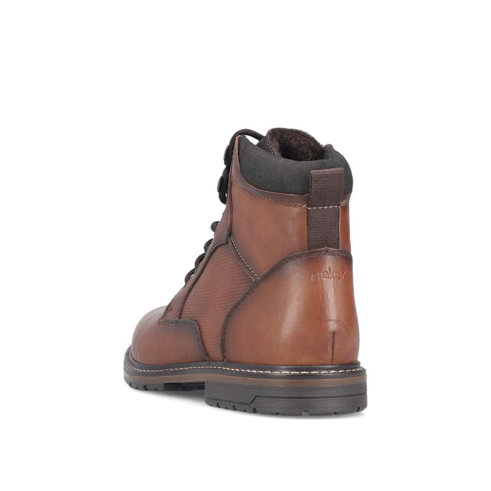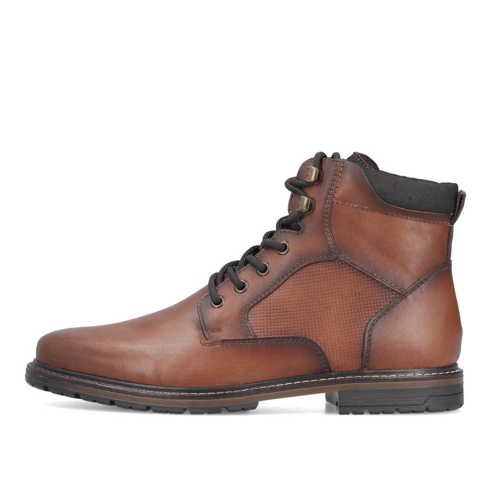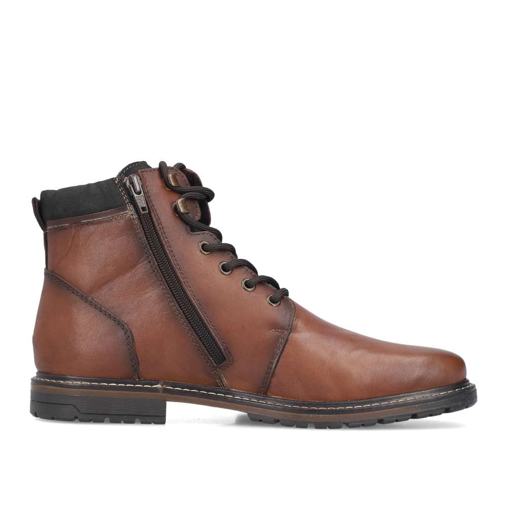 Detailní informace Stylový vzhled těchto bot značky RIEKER je doplněn praktickými detaily, které zaručí pohodlné nošení během celého dne. Hnědý svršek zdobí jemné linie prošití, které vytváří nadčasový design v moderním provedení. Kombinace klasického šněrování a zipu z vnitřní strany umožňuje snadné obouvání. Příjemným prvkem je kožená stélka a textilní podšívka poskytující příjemný komfort každým nášlapům, zatímco podešev s tlumením nárazů se postará o pohodlí i při delší chůzi. Tyto boty značky RIEKER nabízí vyvážený mix stylu a komfortu pro každodenní nošení.