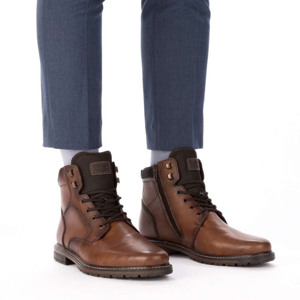 Stylový vzhled těchto bot značky RIEKER je doplněn praktickými detaily, které zaručí pohodlné nošení během celého dne. Hnědý svršek zdobí jemné linie prošití, které vytváří nadčasový design v moderním provedení. Kombinace klasického šněrování a zipu z vnitřní strany umožňuje snadné obouvání. Příjemným prvkem je kožená stélka a textilní podšívka poskytující příjemný komfort každým nášlapům, zatímco podešev s tlumením nárazů se postará o pohodlí i při delší chůzi. Tyto boty značky RIEKER nabízí vyvážený mix stylu a komfortu pro každodenní nošení. Technologie: Antistress – díky čtyřem antistresovým vlastnostem – lehkosti, pružnosti, prostornosti a vynikající absorpci nárazů – vám boty RIEKER nabídnou komfortnější chůzi.