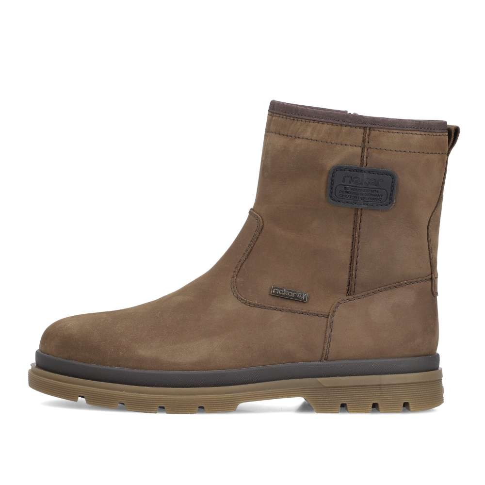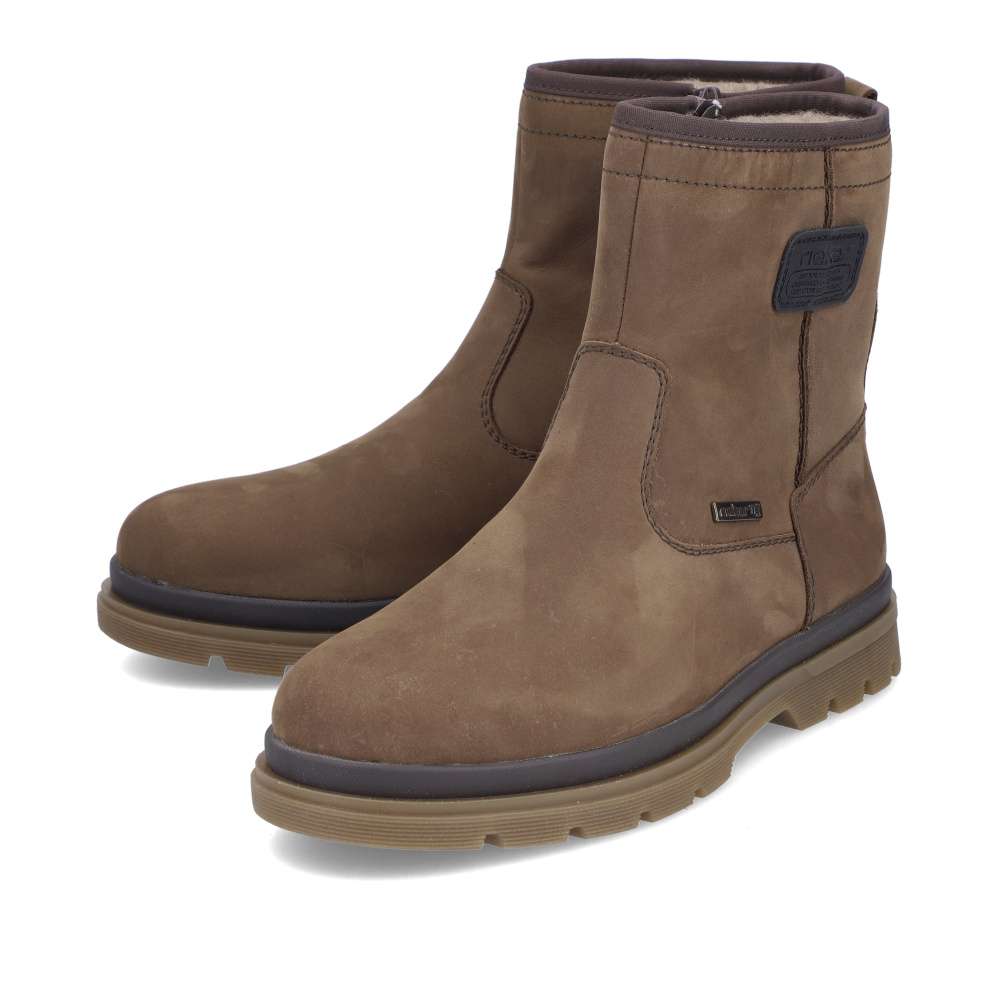 Tyto kotníkové boty značky RIEKER v sobě spojují moderní vzhled a vyjímečný komfort, což ocení nejeden muž v zimním období. Kožený svršek zdobí stylová nášivka s logem značky a jemné linie prošití, které dodávají botám stylový charakter. Funkčnost zvyšuje nepromokavá vrstva, která ochrání vaše nohy před nepříznivým počasím a nemusíte se obávat promoknutí. Díky bočnímu zipu je nazouvání rychlé a pohodlné – stačí vklouznout do hřejivé podšívky z pravé ovčí vlny a užívat si teplo i během chladných dnů. Širší střih nabízí větší pohodlí při nošení a vyjímatelná stélka umožňuje snadnou údržbu či výměnu za ortopedickou nebo jinou preferovanou vložku. Dokonalé pohodlí každým krokem vytvoří podešev s funkcí tlumení nárazů. Tento model je skvělou volbou pro muže, kteří chtějí spojit styl, praktičnost a maximální komfort během zimní sezóny. Technologie: Antistress – díky čtyřem antistresovým vlastnostem – lehkosti, pružnosti, prostornosti a vynikající absorpci nárazů – vám boty RIEKER nabídnou komfortnější chůzi. Rieker TEX – funkční vrstva, díky které je bota nepromokavá a přesto prodyšná. Podšívka je vyrobena z pravé ovčí vlny. EXTRA WIDE – boty jsou širšího střihu, tvar boty je přizpůsoben chodidlu pro vytvoření dostatečného prostoru v oblasti přední části chodidla. Tato bota je vybavena vyjímatelnou stélkou.